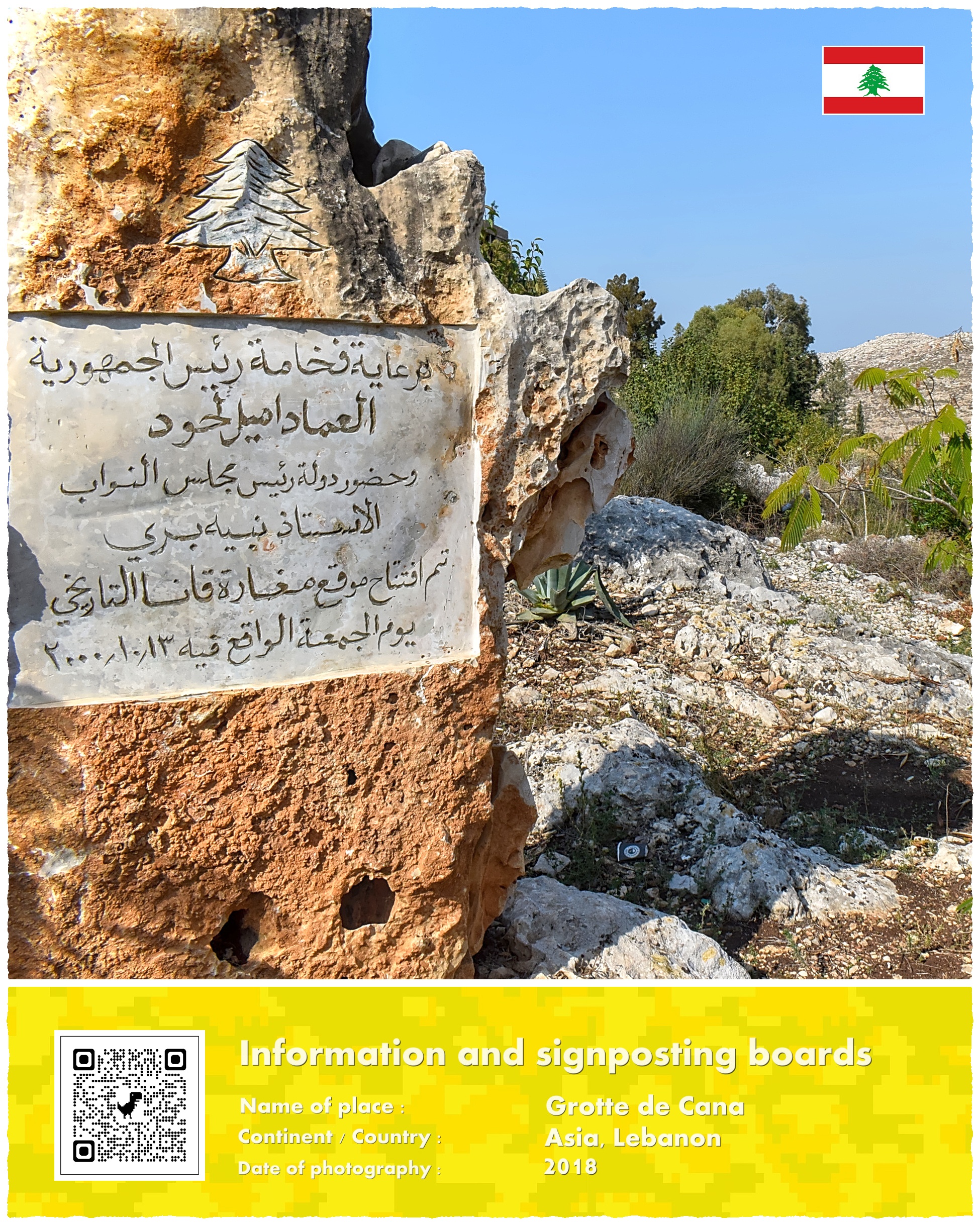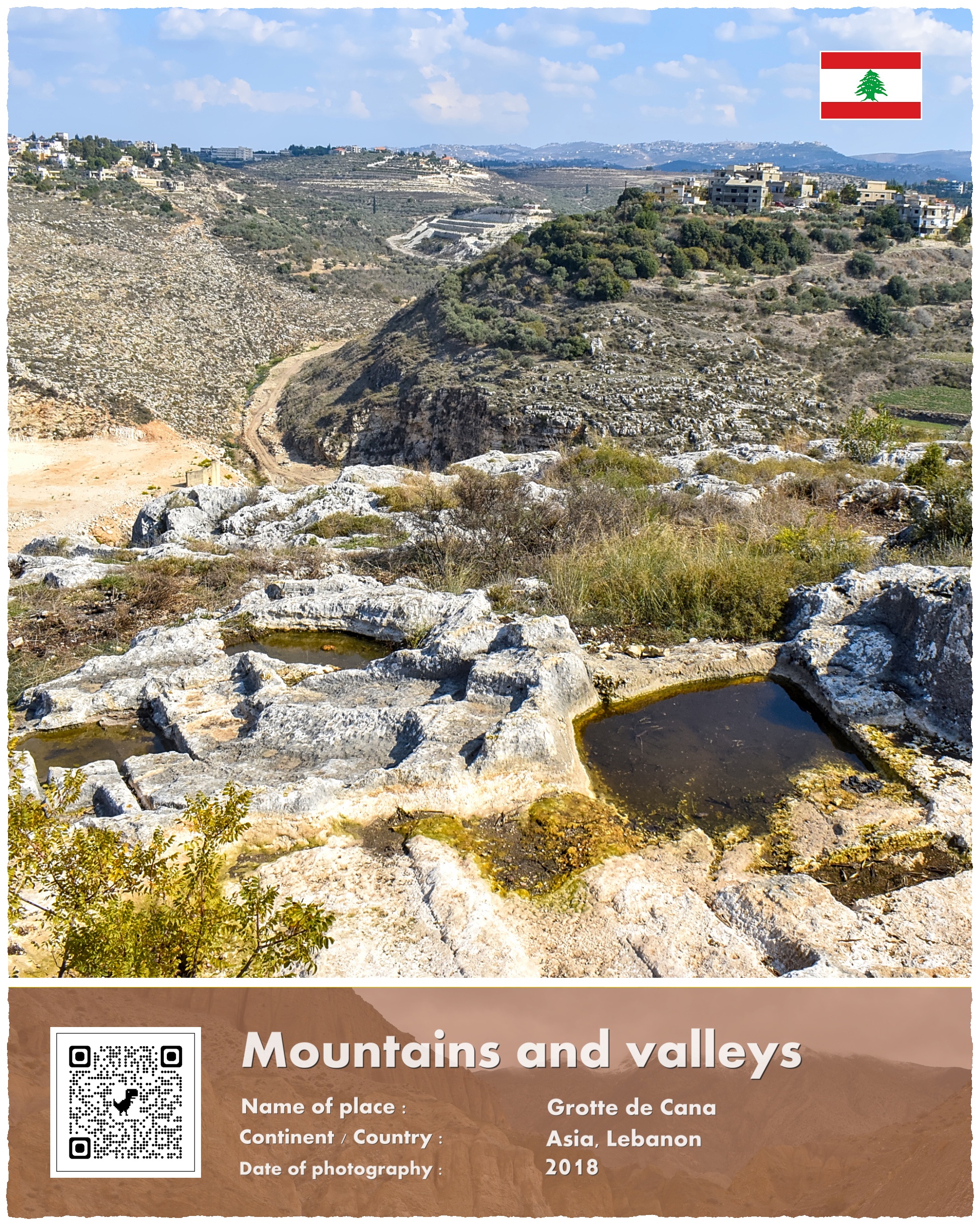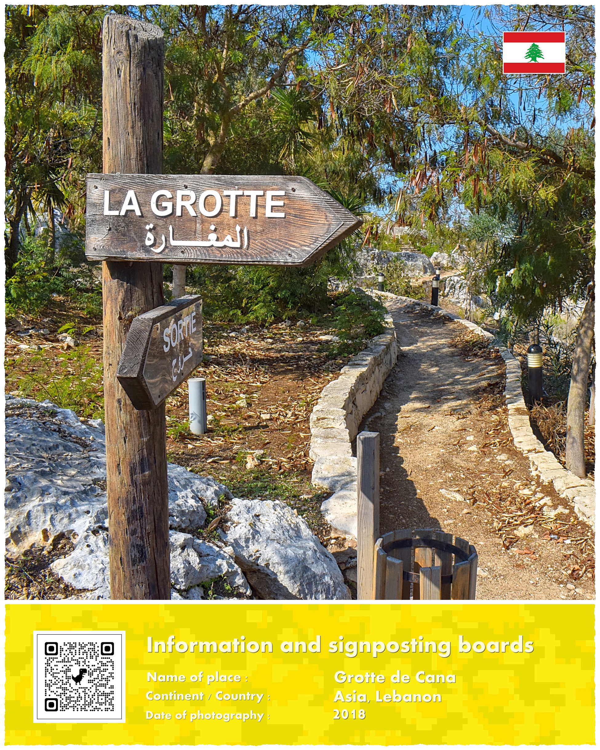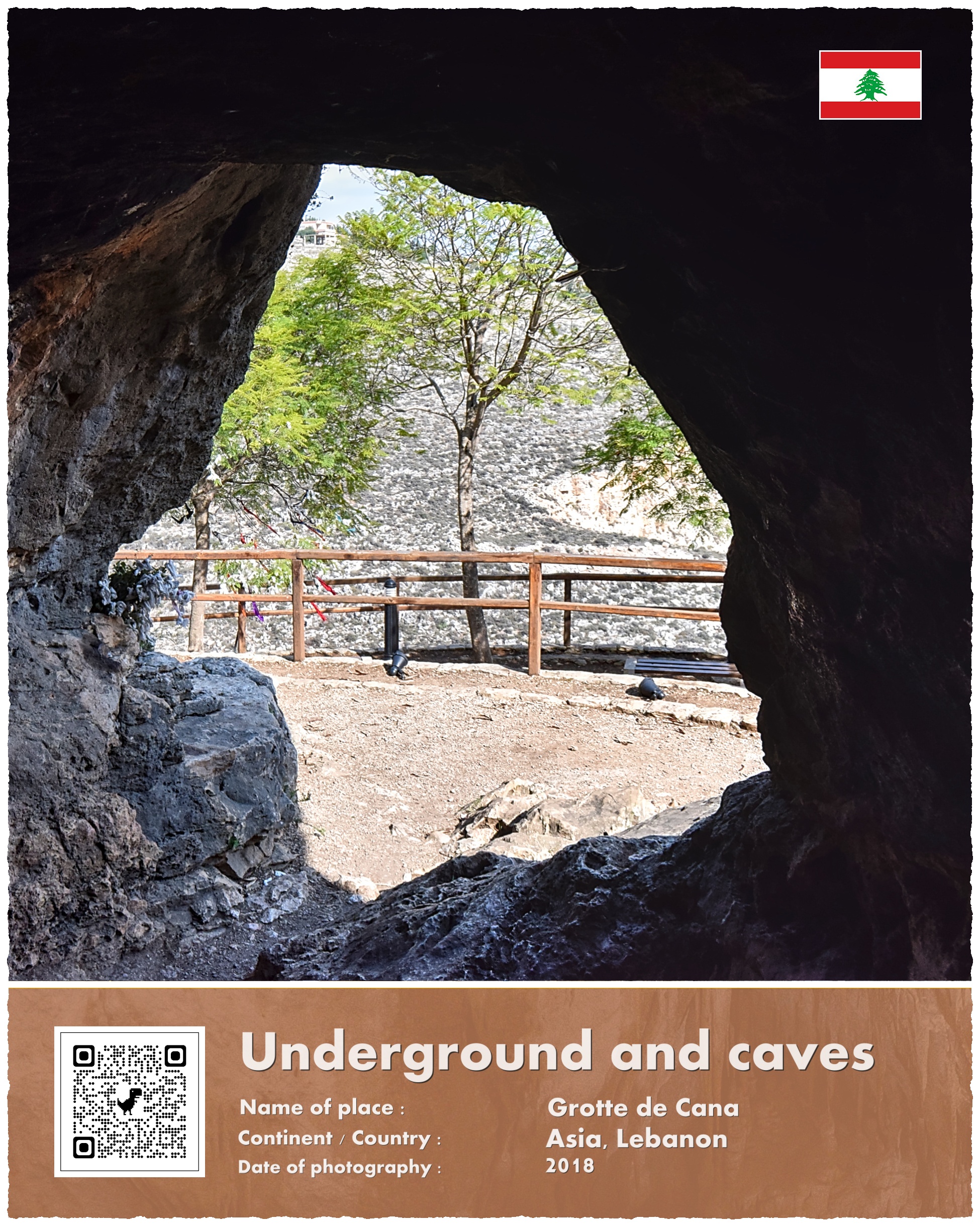 Do groty (Grotte de Cana) prowadzi wyłożona drobnymi kamykami, zadbana kilkuset metrowa ścieżka. Schodzi ona w dół zbocza oferując dodatkowo piękny panoramiczny widok na dolinę Wadi Ashir. Mijając wykute w skale cysterny przeznaczone do przechowywania wody oraz ablucji docieramy po krótkiej chwili do wejścia do jaskini. Oto przed nami Grotte de Cana.