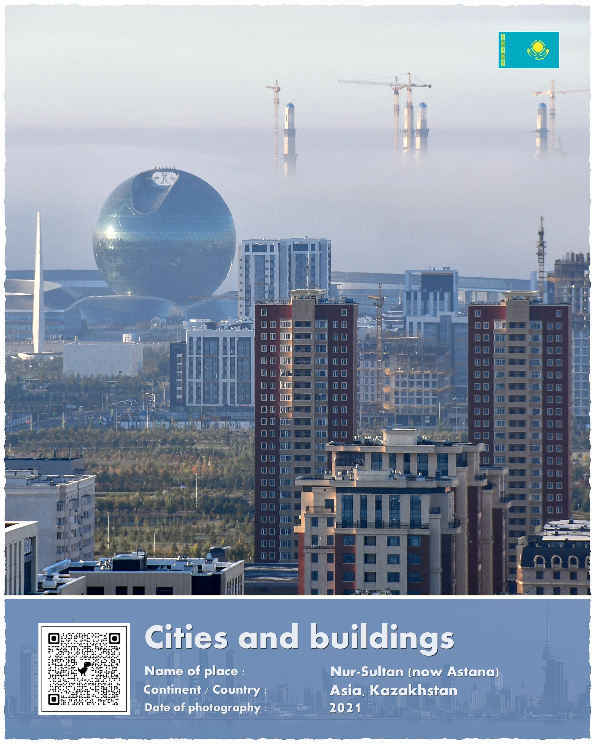 Nursułtan jest dużym miastem. Choć kończy się dziwnie — nie ma typowych, ciągnących się kilometrami przedmieść. Miasto kończy się jakby ucięte nożem; gdy władze uznają, że trzeba je powiększyć, po prostu ze stepu wydzielają kolejną dzielnicę.