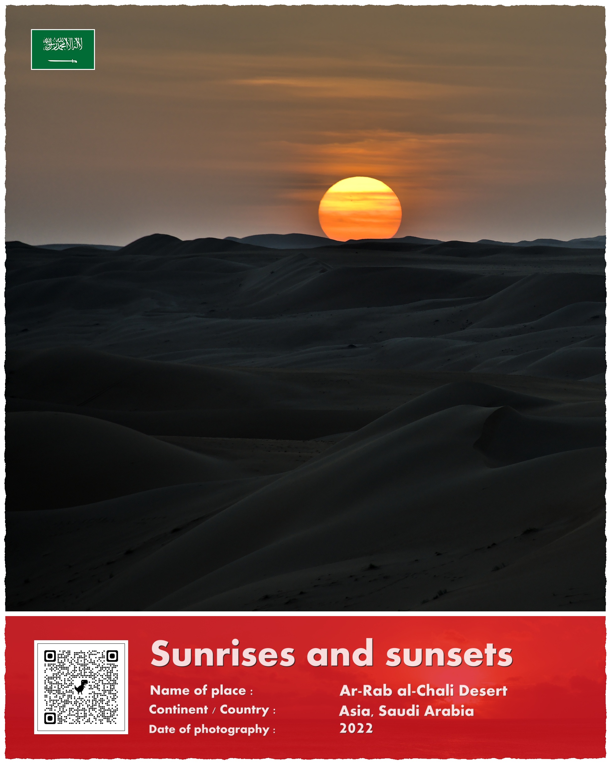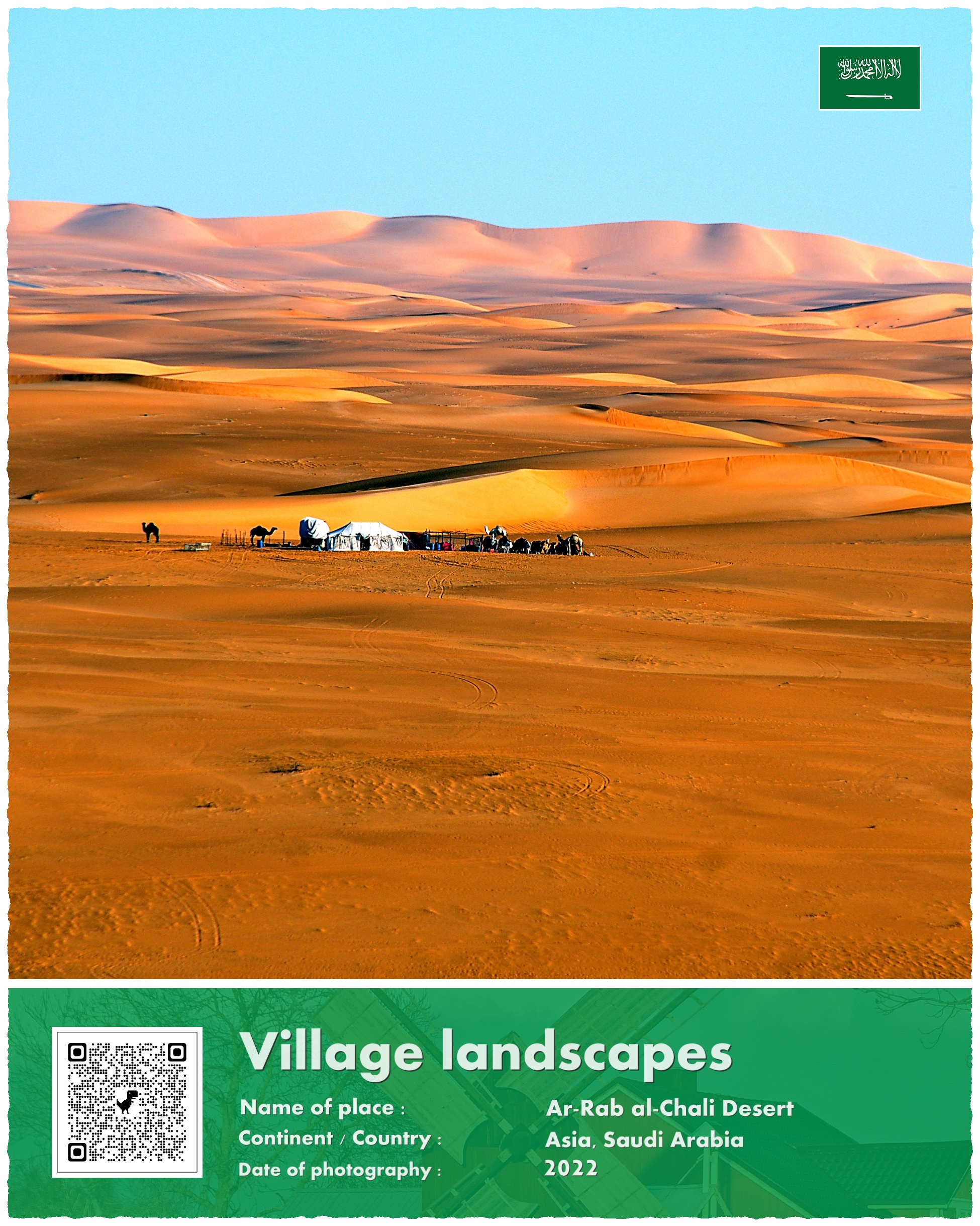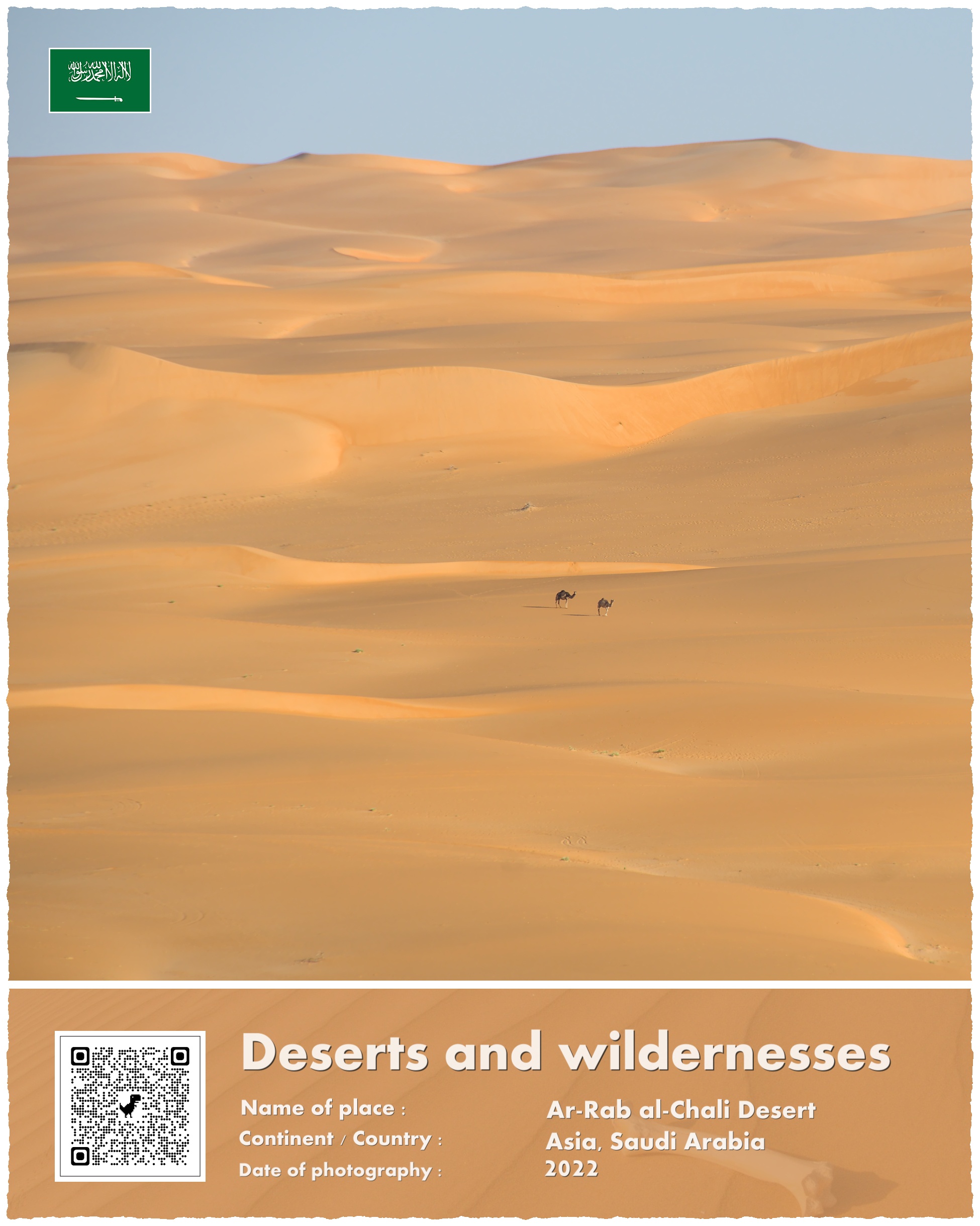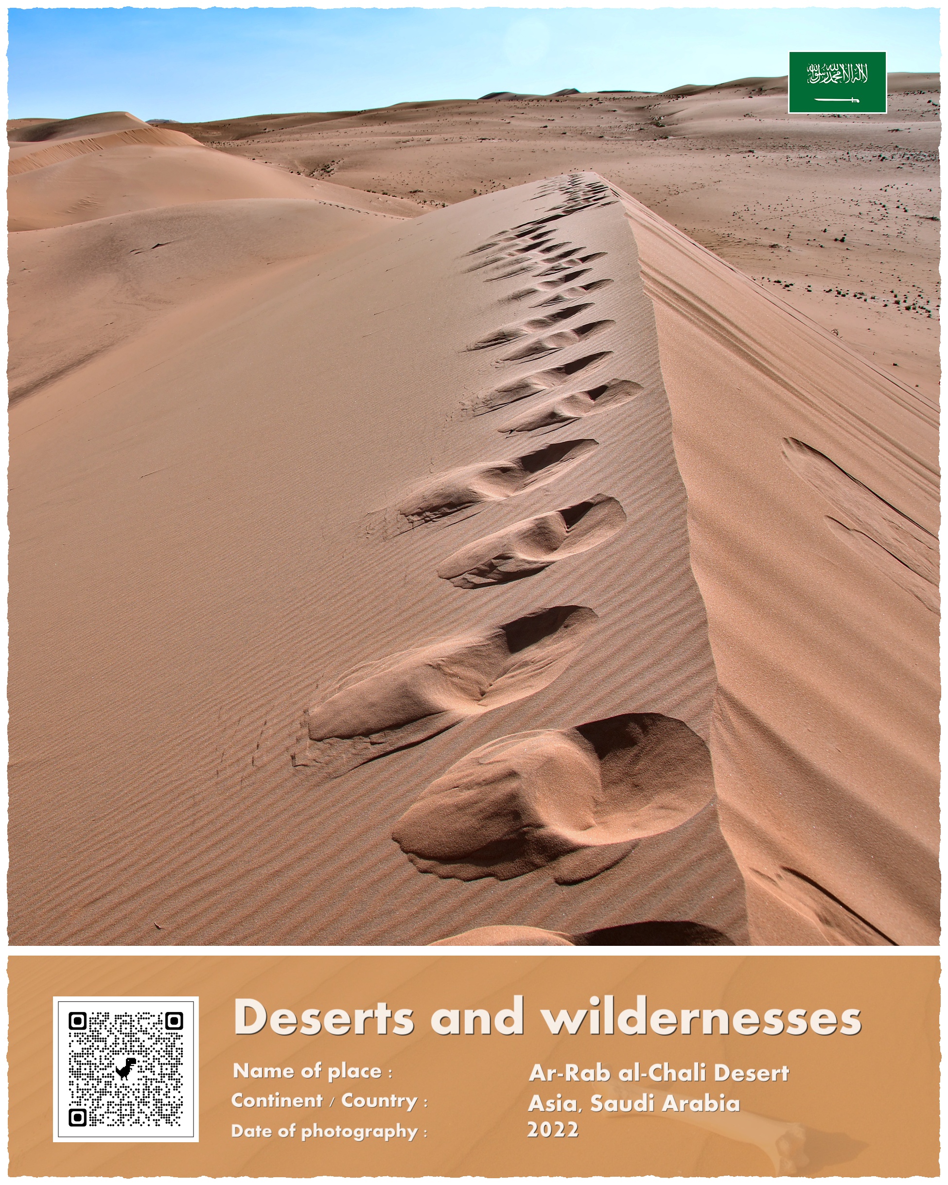 Pustynia Ar-Rab al-Chali to największa pustynia piaszczysta na Ziemi. Ustępuje wielkością innym pustyniom, ale są one w przeważającej większości kamienne. Największą „piaskownicę” świata znajdziecie właśnie w Arabii Saudyjskiej – w jej środkowo i południowo-wschodniej części. Ar-Rab ma powierzchnię blisko 700.000 kilometrów kwadratowych, tyle co dwie powierzchnie Polski. Stojąc na jej wydmach wyobrazić sobie trzeba, że drugi koniec piasku znajduje się… 1200 kilometrów dalej, w Omanie. Szerokość pustyni waha się od 200 do 400 kilometrów. Wysokość wydm dochodzi do 300 metrów.