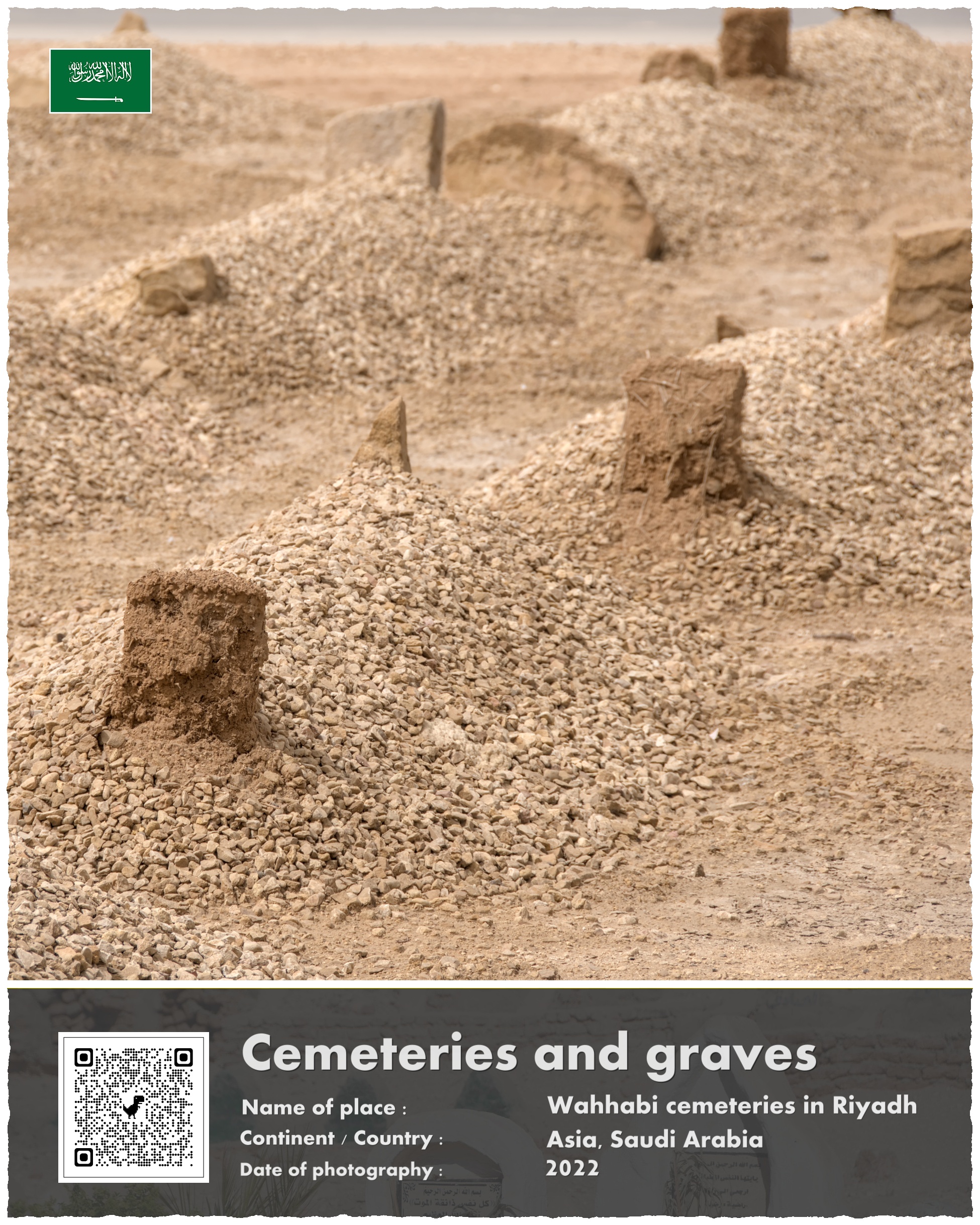 Jak wyglądają wahhabickie groby? Charakteryzują się absolutnym minimalizmem. W sytuacji, gdy zasady religijne zabraniają utrwalania ludzkich twarzy czy choćby zarysu sylwetek, oznaczenie grobu sprowadza się zwykle do samotnego kamienia, cegły, czasem zaledwie… pustaka położonego w miejscu złożenia zwłok. Efekt, w porównaniu z bogato zdobionymi grobami chrześcijańskimi do których jesteśmy przyzwyczajeni, jest… trudno dobrać odpowiedni wyraz. Oszałamiający? Przygnębiający? Zaskakujący?