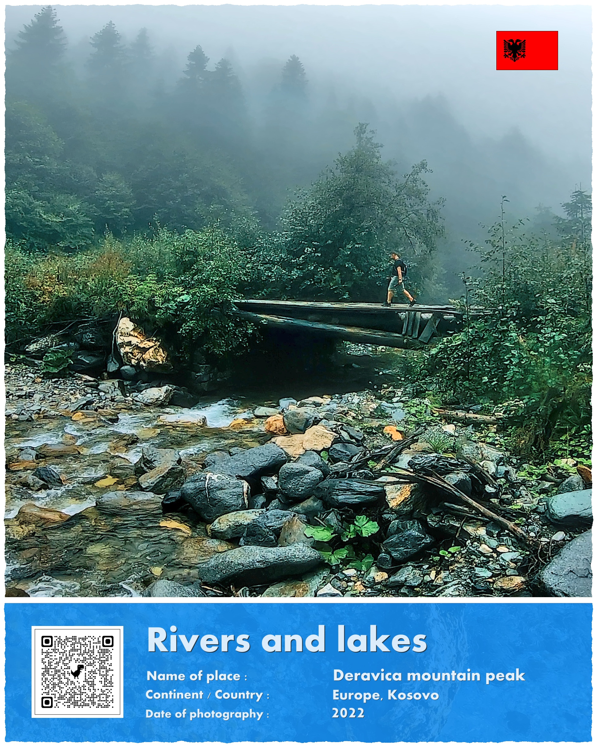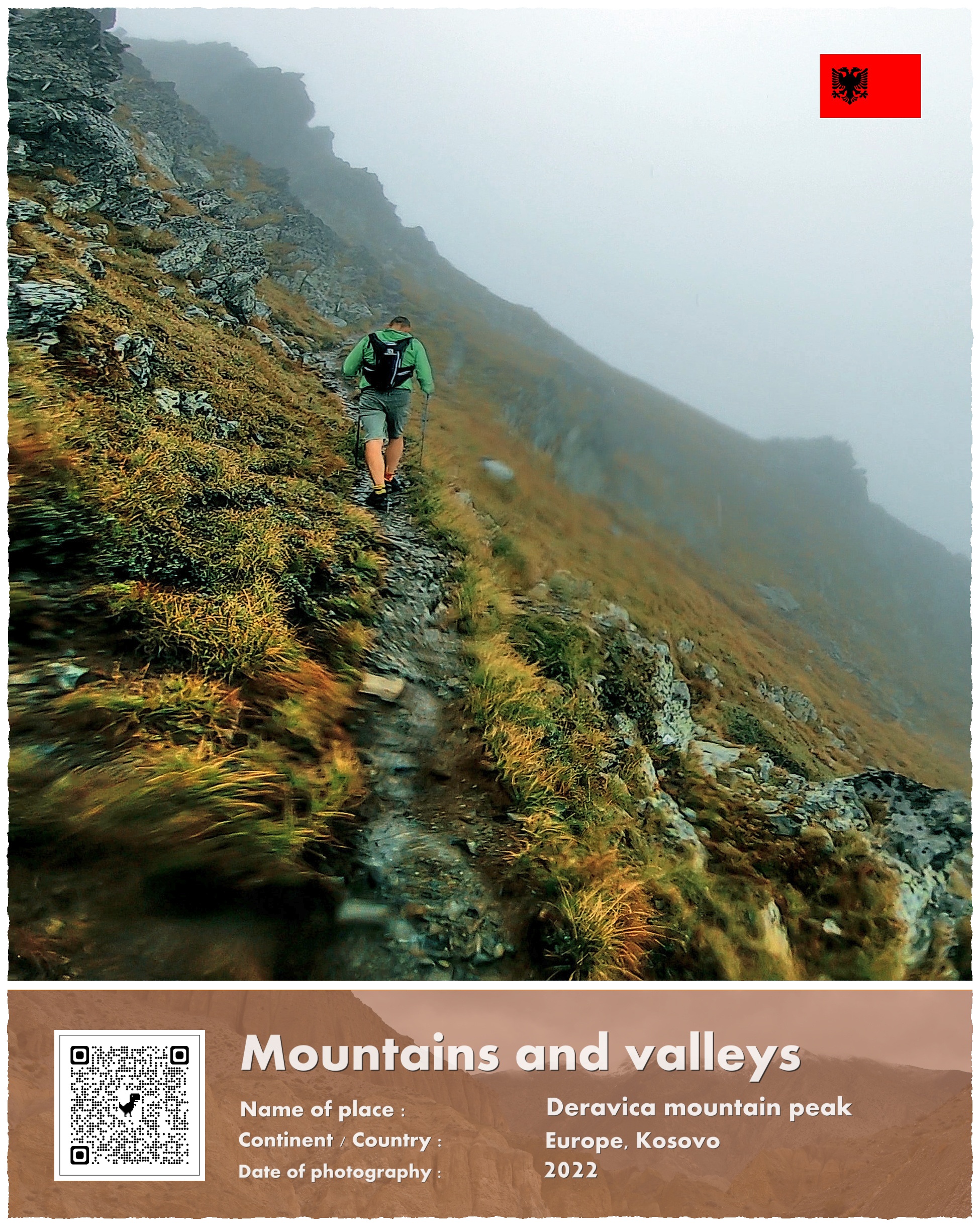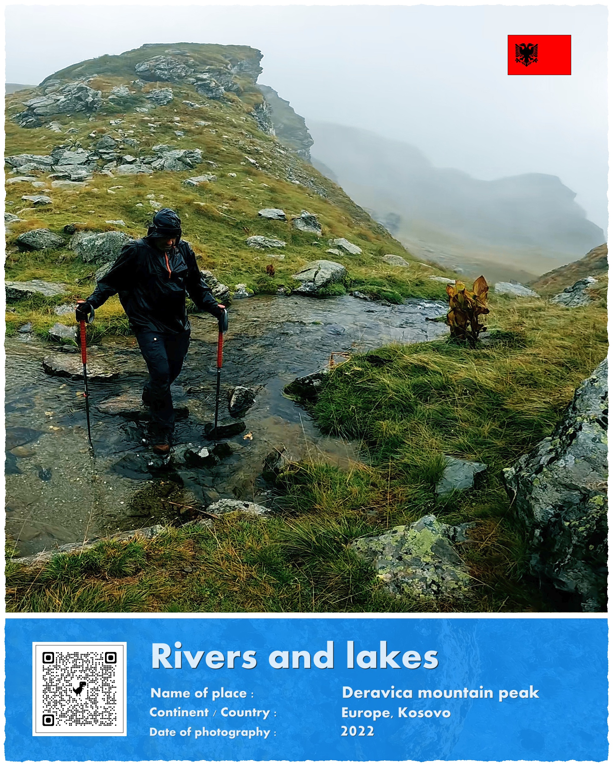 Zejście było łatwe i bezpieczne, tym razem szlak był dobrze widoczny. Utrudnieniem były natomiast jego niezbyt dobrze oznaczone rozgałęzienia – niektóre nitki ścieżki prowadziły do pobliskiej granicy z Albanią. Dwa razy musieliśmy zawrócić. Zejście oferowało widoki na kilka tutejszych malowniczych jezior, których nie zauważyliśmy wchodząc od drugiej strony – niestety i tym razem w zrobieniu zdjęć przeszkadzała gęstniejąca mgła. Ostatnie dwa kilometry przed wioską szlak prowadził nas łagodnie opadającą dolinką pełną spływających w dół potoków. W dół schodziło się szybko dobrze, bez błądzenia – ale wystarczyło odwrócić głowę w górę, by szlak… ponownie zniknął. To zdecydowanie dziwne oznaczenie; widoczne głównie na zejściach a nie na podejściach; stare ślady farby wskazują, że oznaczenia mogą pochodzić jeszcze z czasów istnienia Jugosławii.