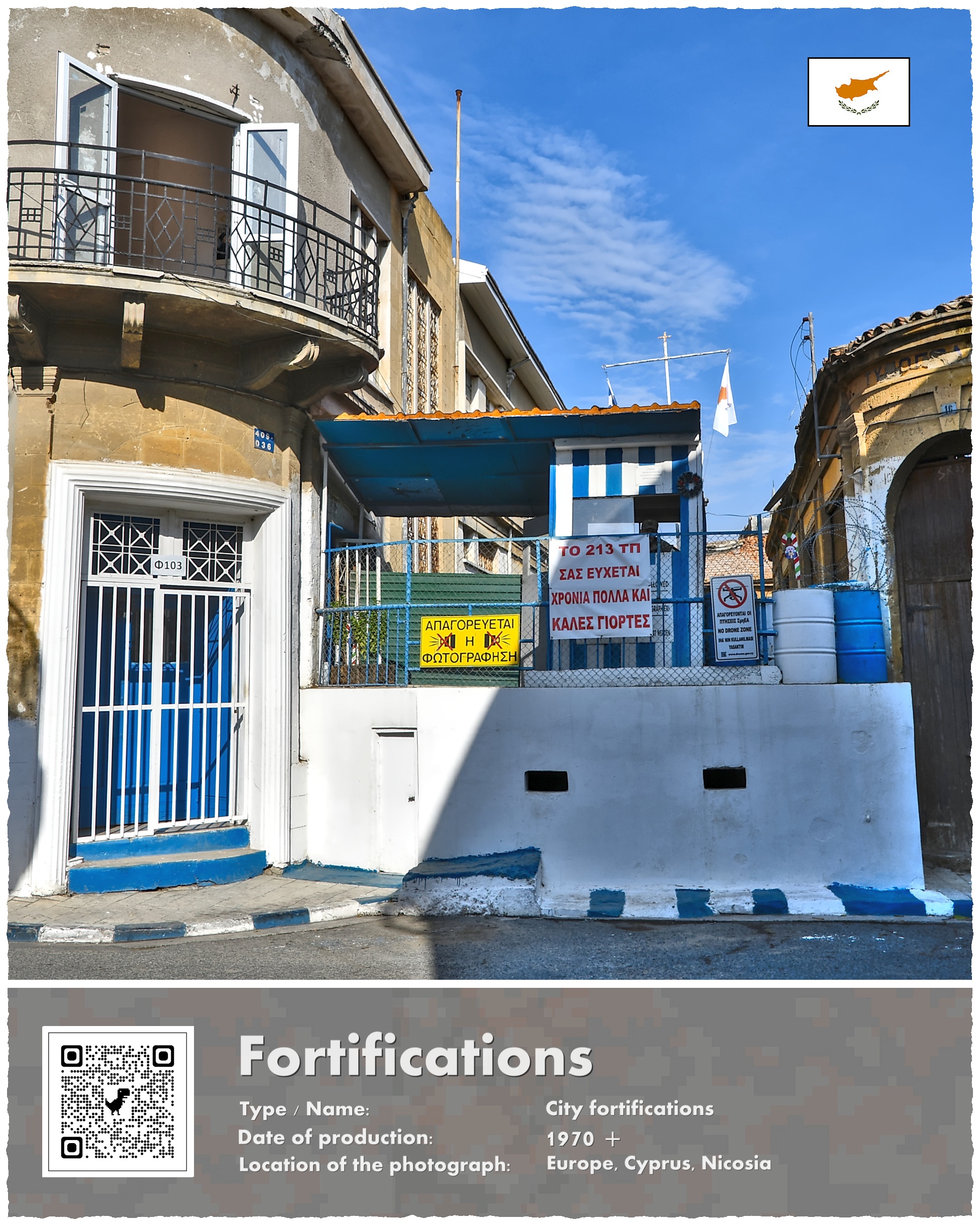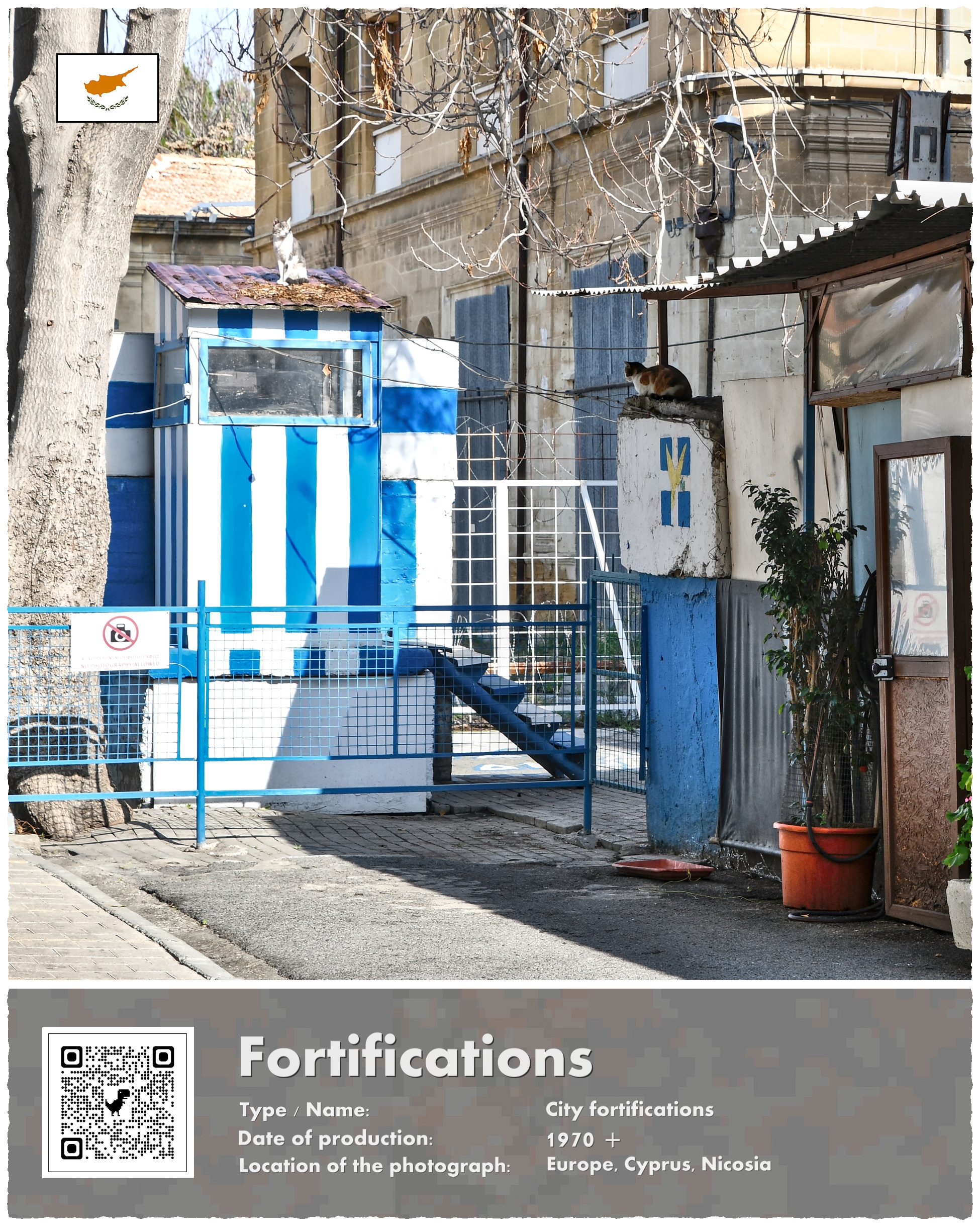 Rozdzierający Nikozję na dwie części mur był wysoki na kilka metrów, a na pierwszy rzut oka przypominał mi Mur Berliński. Jednak szybko dostrzegliśmy różnice: był zbyt nieregularny i sprawiał wrażenie zbudowanego pośpiesznie z tego, co akurat było pod ręką: składał się z beczek, betonowych bloków, wraku starego autobusu. Mur lawirował i przecinał ciemne, niedoświetlone uliczki – w wielu miejscach był twórczo wkomponowany w zrujnowane, graniczne budynki. Wieńczyły go zasieki i kamery, a co kilkadziesiąt metrów wyrastała z niego wieżyczka strażnicza. Wpadłem na pomysł nakręcenia krótkiego filmu – nadszedł jednak policyjny patrol, który szybko wybił mi ten pomysł z głowy.