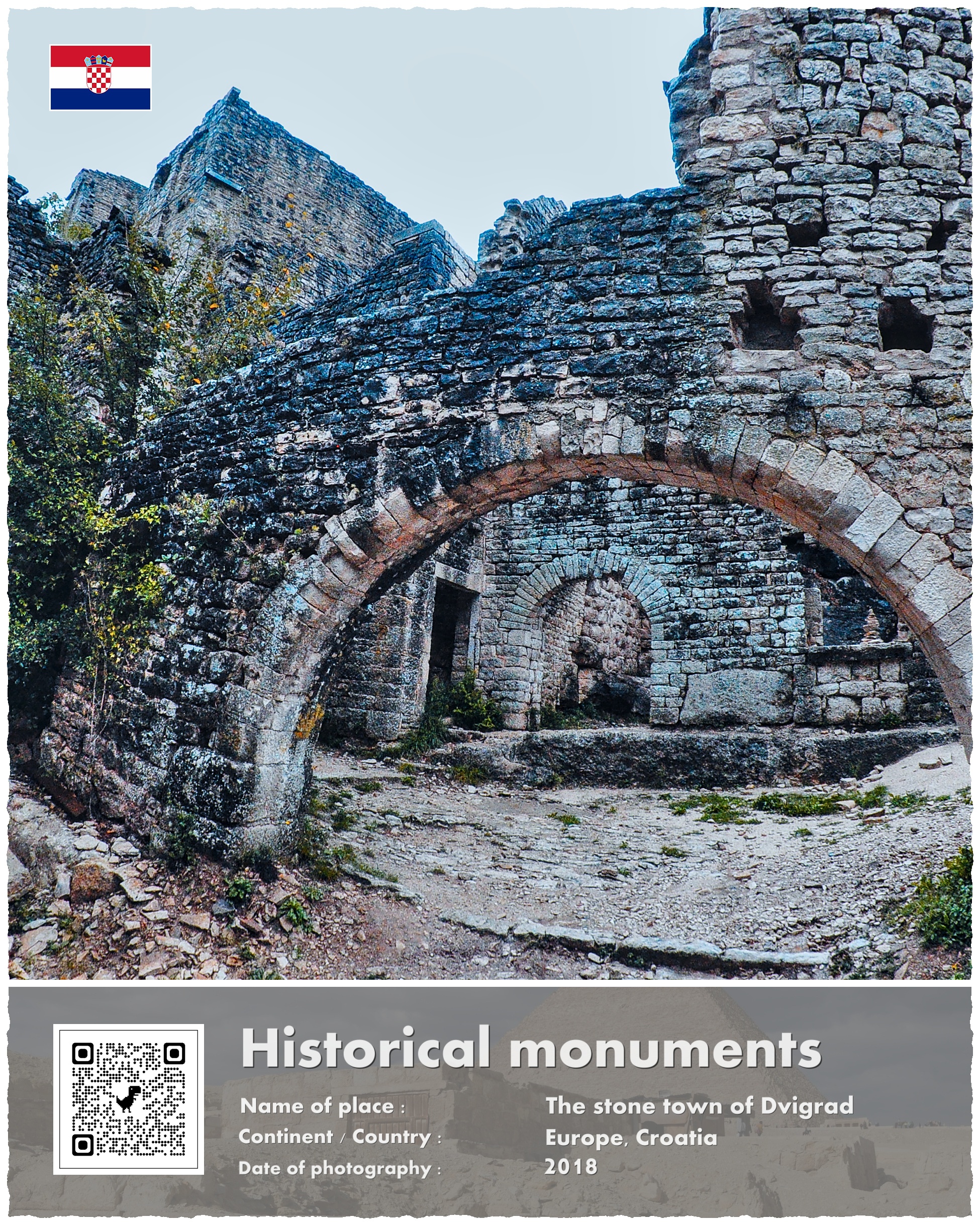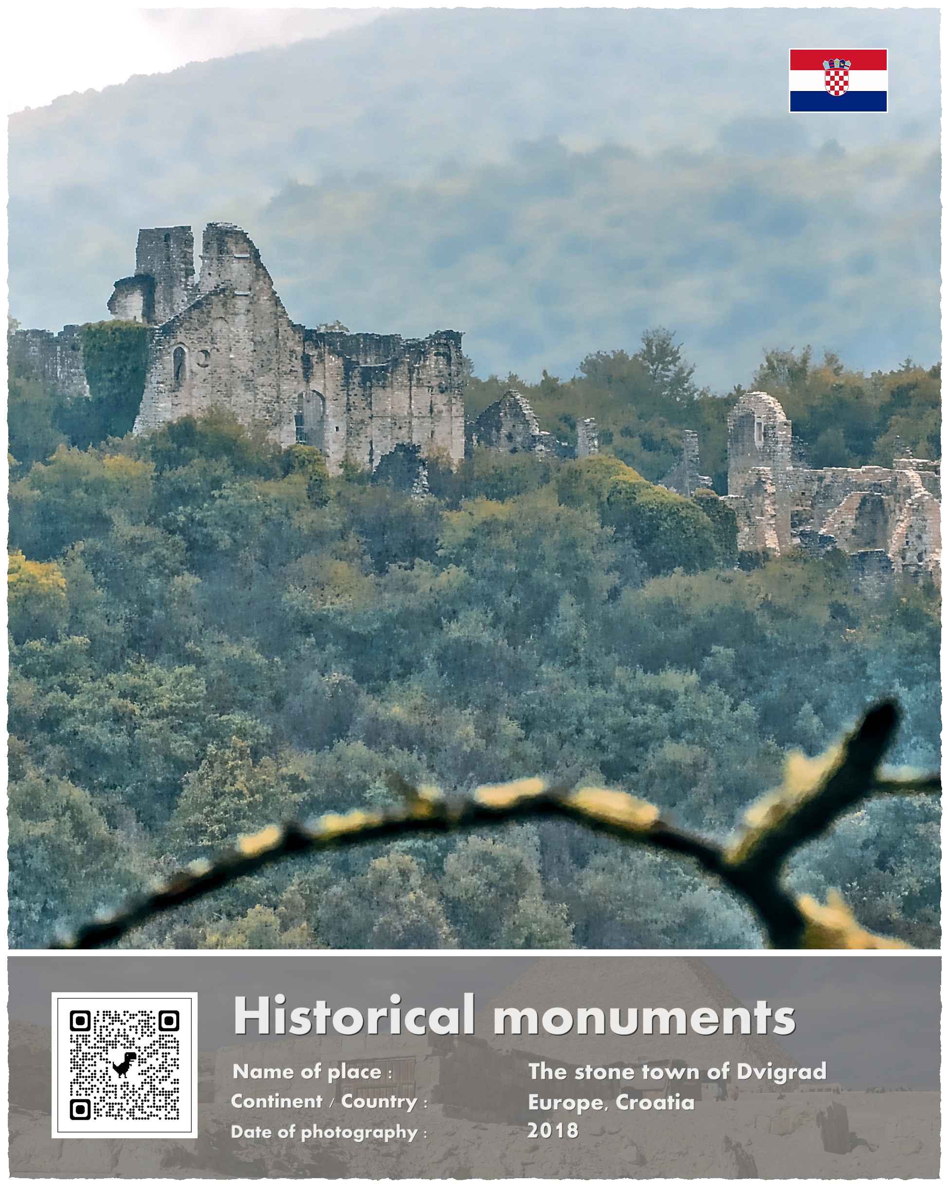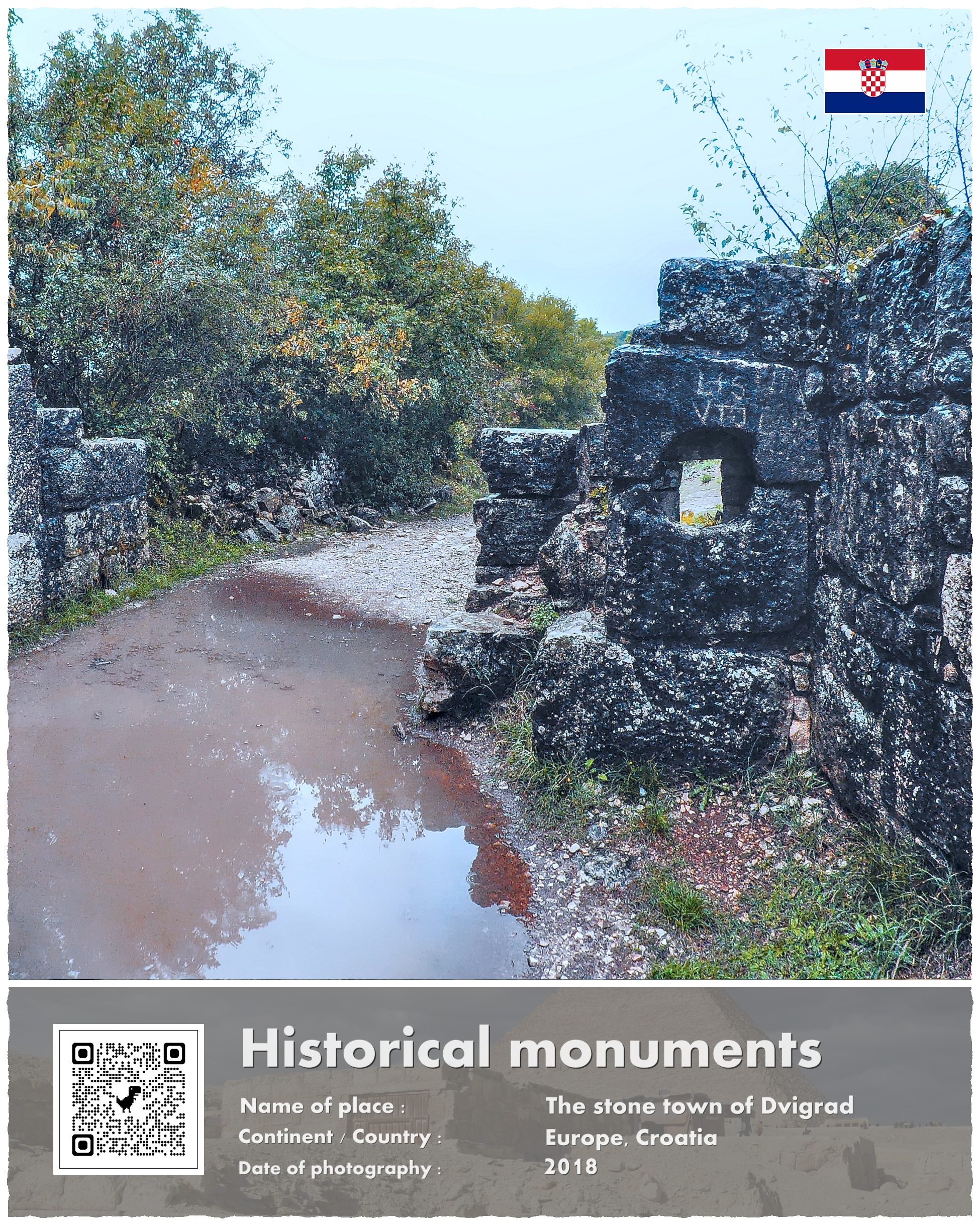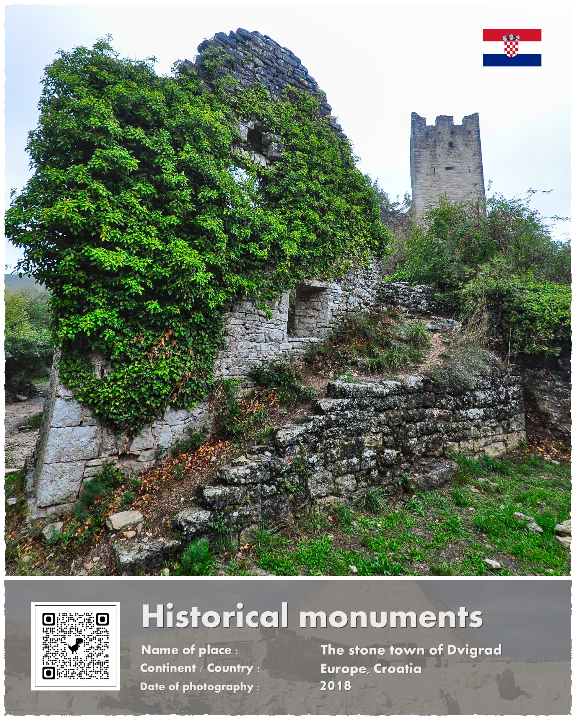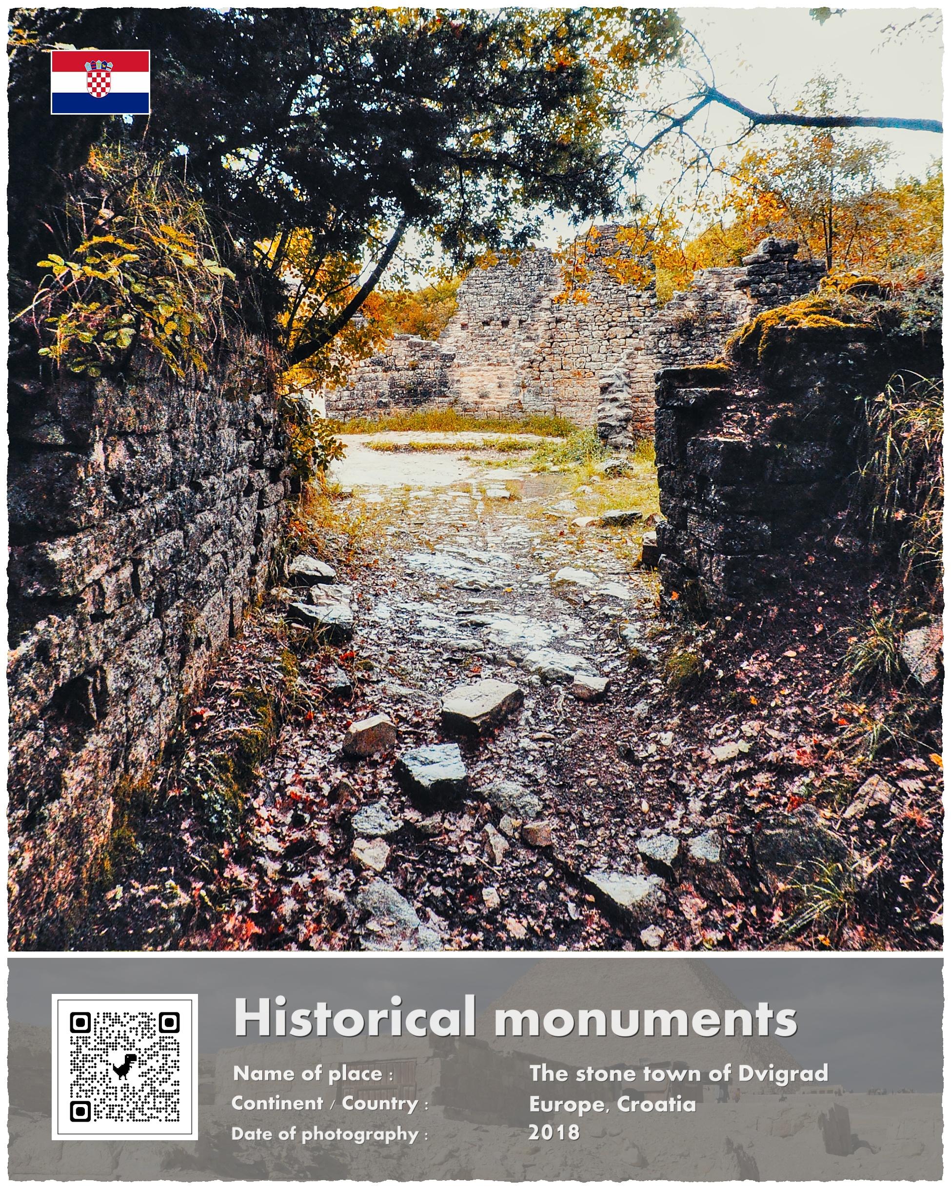 Dvigrad to opuszczone miasto położone niegdyś na dwóch sąsiednich wzgórzach przeciętych płynącą pośrodku niewielką rzeczką. Piszę „niegdyś”, gdyż obecnie ruiny zajmują już tylko jedno z nich. Region zasiedlony był już w starożytności, ale choć wiadomo, że osiedlano się w tym miejscu zarówno w czasach rzymskich, jak i neolitycznych, to pierwsza pisana wzmianka o mieście pochodzi dopiero z 879 r.
