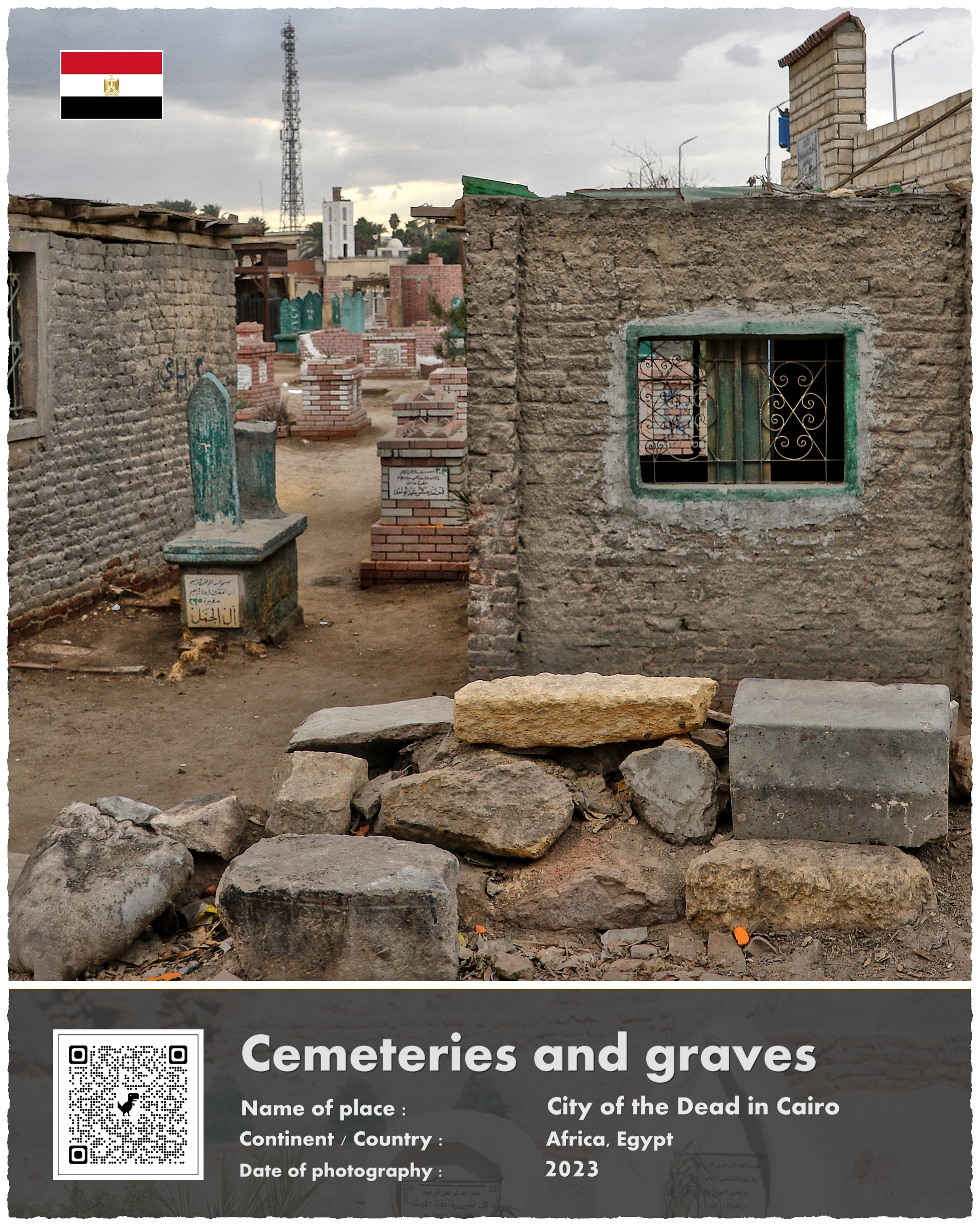 Gdzieś ci wszyscy nowi mieszkańcy musieli zamieszkać. Rozwiązanie zmaterializowało się w samym centrum Kairu: okazały się nim porzucone i częściowo zrujnowane olbrzymie nekropolie pamiętające dawne arabskie czasy. Całe kilometry kwadratowe pustostanów pozbawionych właścicieli, gotowych niemal od ręki do zamieszkania. Ale zaraz… jak to… – zapytacie. Jak można technicznie zamieszkać… w grobie? Przecież grób to zwykła jama w ziemi, zawierająca na dodatek trumnę i zwłoki człowieka!