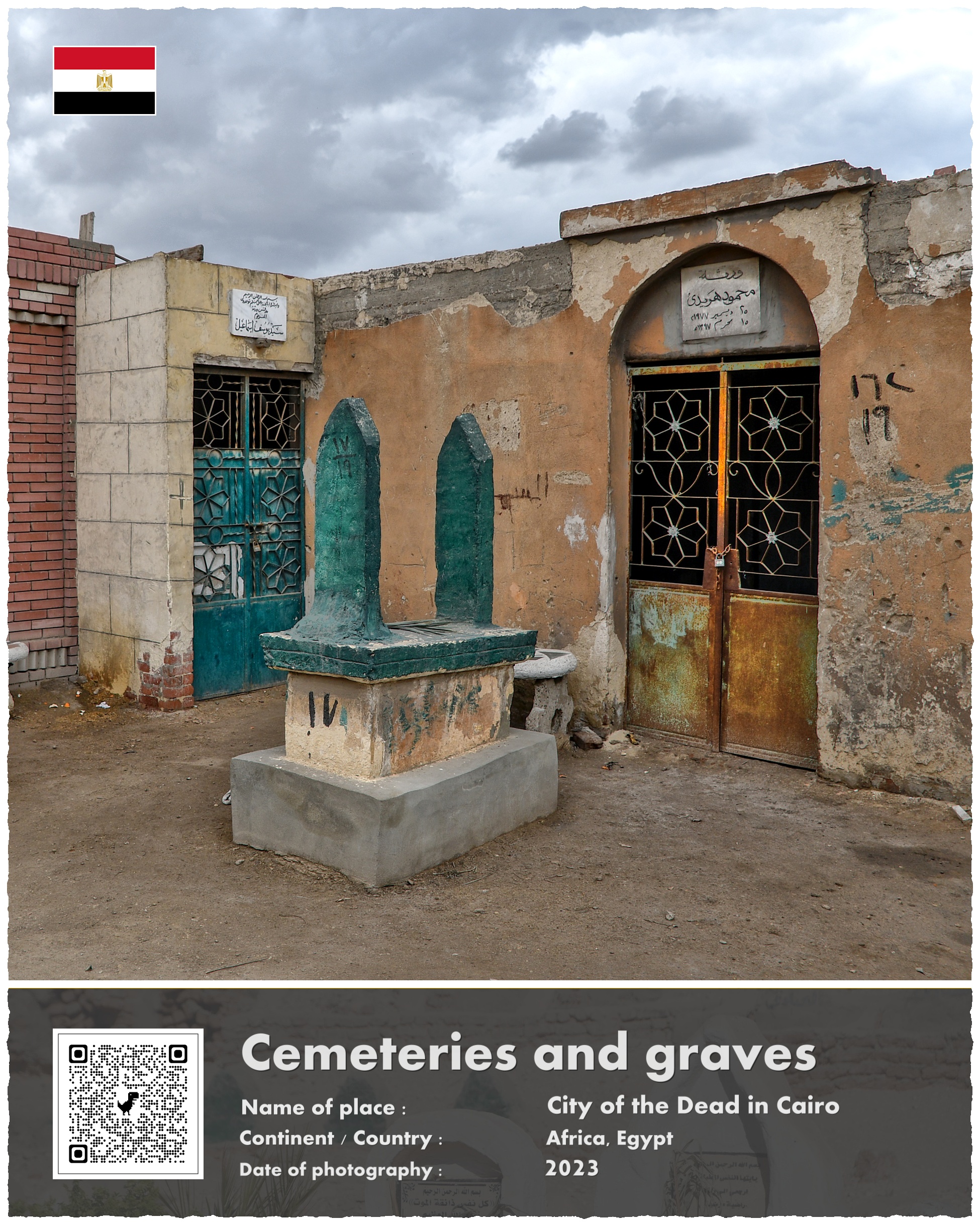 I taką właśnie konstrukcję miało wiele tradycyjnych grobów znajdujących się na nekropoliach Kairu. Były one ogrodzone, zadaszone, często miały formę niewielkiego pokoju lub wręcz mieszkania. Drzwi wejściowe prowadziły do mniej lub bardziej przestronnego wnętrza, w którego podłodze znajdowały się właściwe groby. Nierzadko takie „domki” wyposażano w okna, świetliki, barierki – a nawet stoły i podesty przydatne podczas odwiedzania przodka przez żywych członków rodziny.