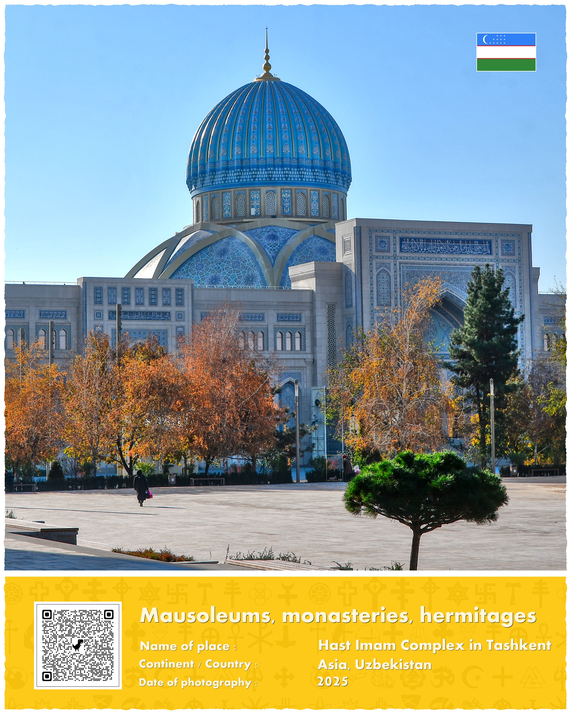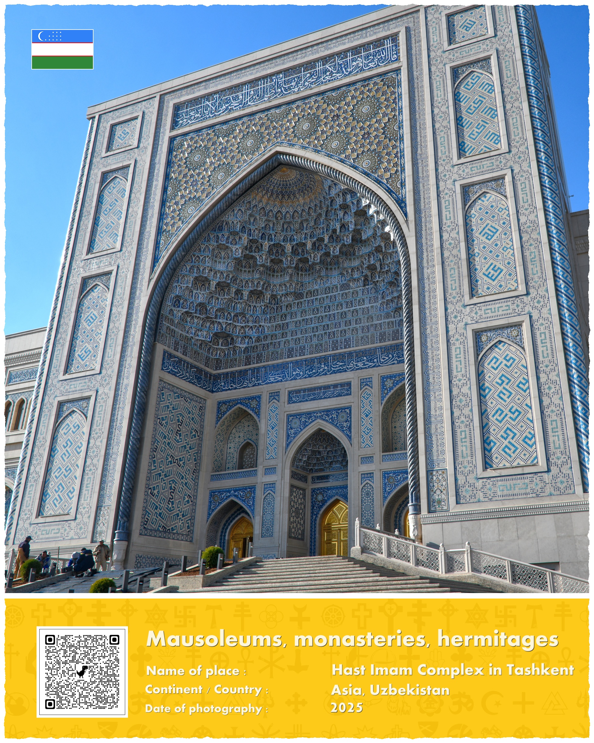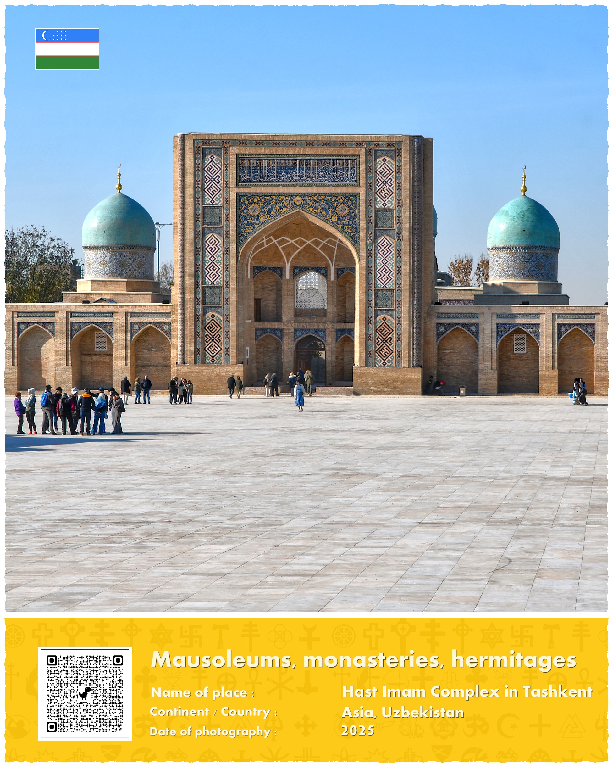 […] Kompleks składa się z medresy Moʻyi Muborak, mauzoleum Qaffol Shoshi, medresy Baroqxon, meczetu Hazrati Imam, meczetu Tillashayx i Islamskiego Instytutu Imama al-Buchari. Zespół został zbudowany w pobliżu grobu Hazrati Imama, pierwszego imama-khatiba Taszkentu, uczonego, jednego z pierwszych kaznodziejów islamu w Taszkencie, poety i artysty […]