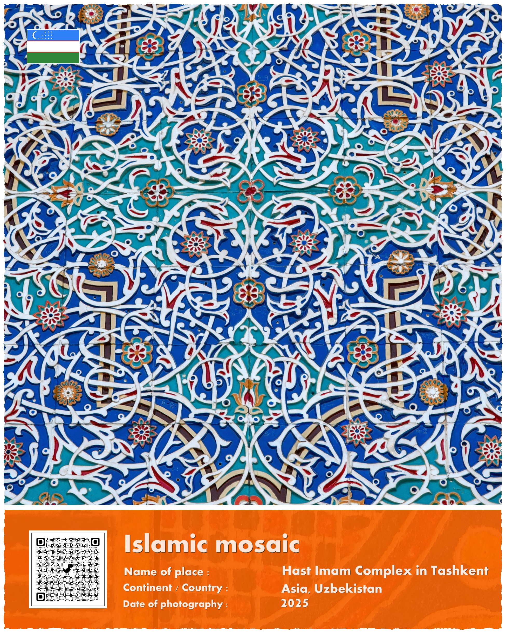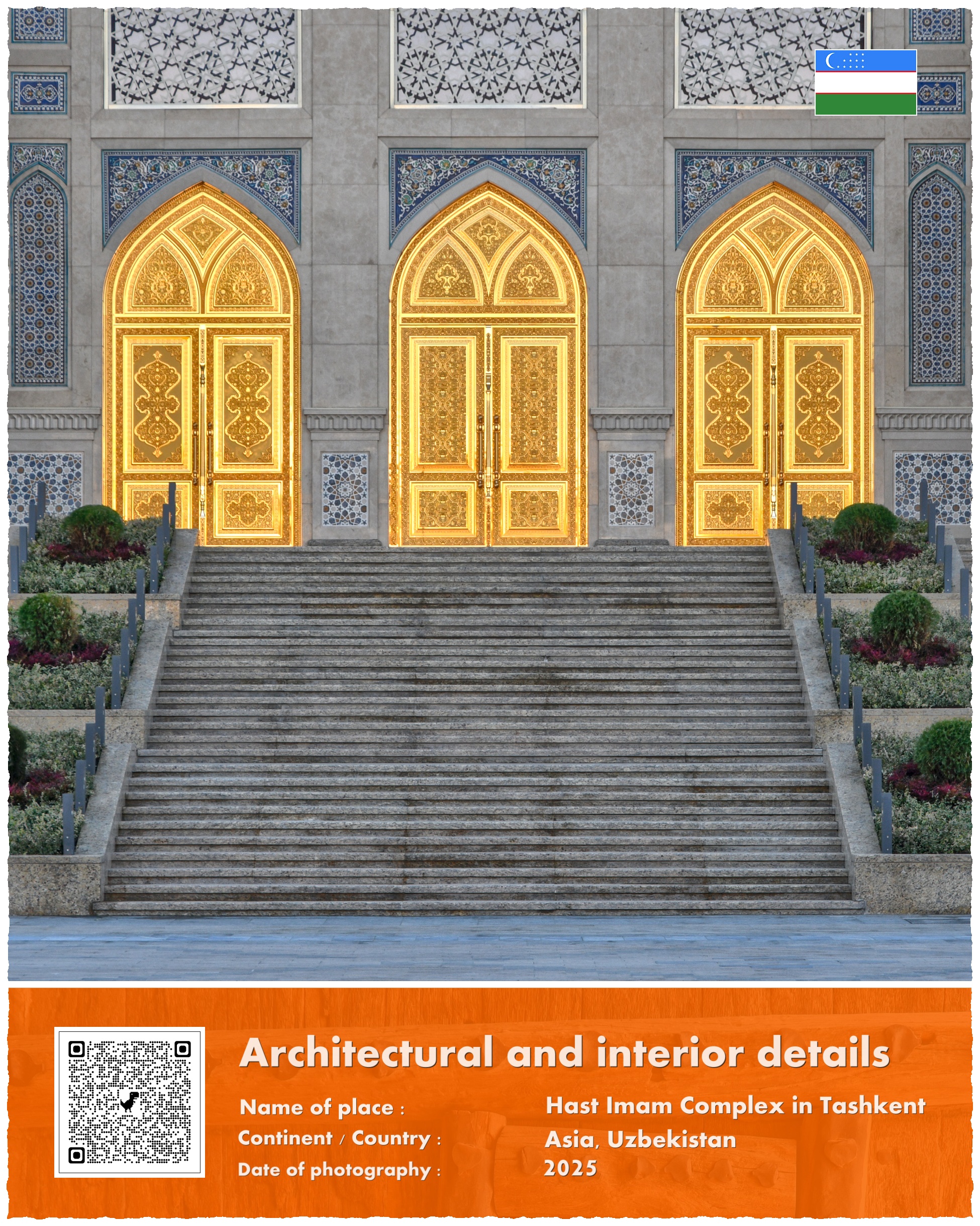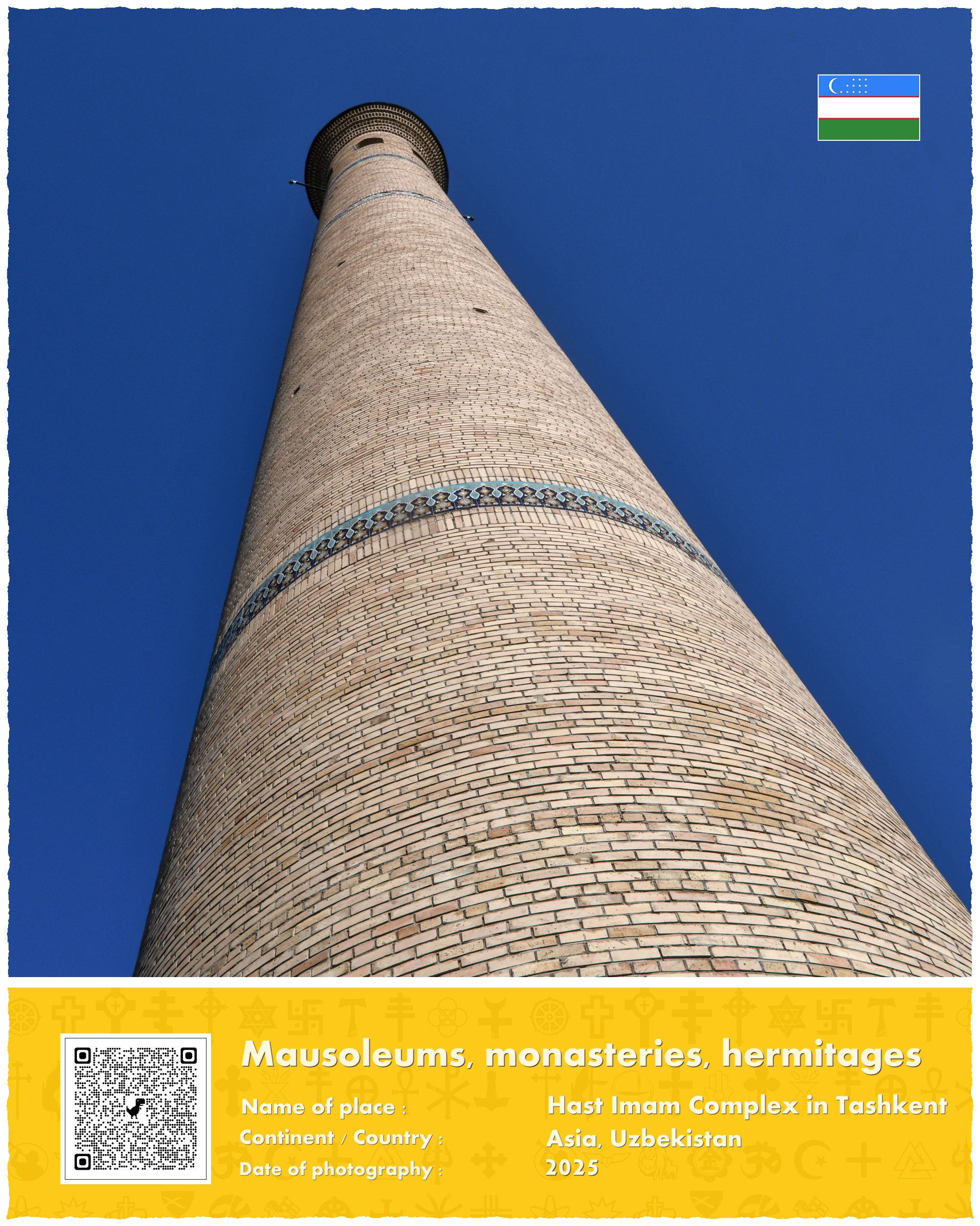 […] Kompleks składa się z medresy Moʻyi Muborak, mauzoleum Qaffol Shoshi, medresy Baroqxon, meczetu Hazrati Imam, meczetu Tillashayx i Islamskiego Instytutu Imama al-Buchari. Zespół został zbudowany w pobliżu grobu Hazrati Imama, pierwszego imama-khatiba Taszkentu, uczonego, jednego z pierwszych kaznodziejów islamu w Taszkencie, poety i artysty […]