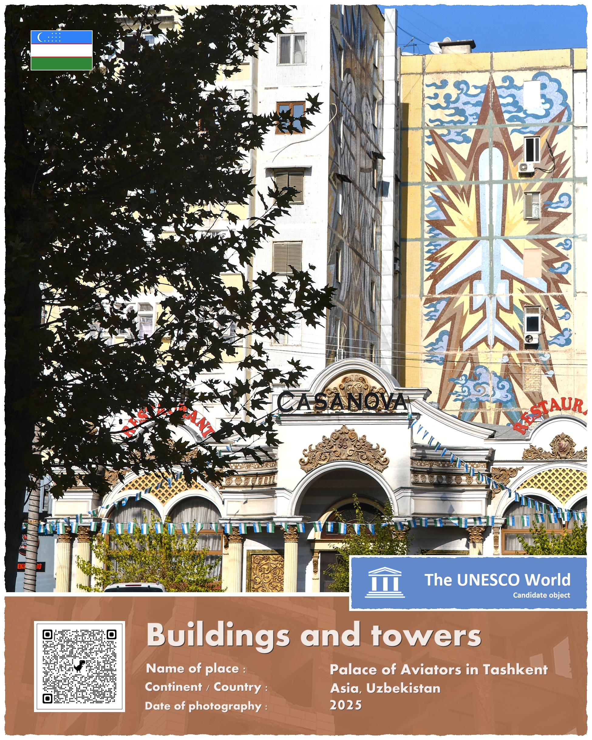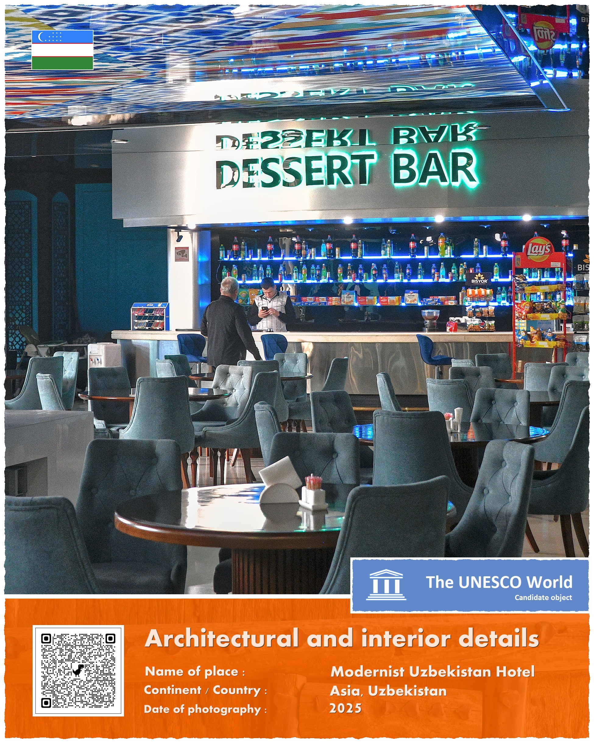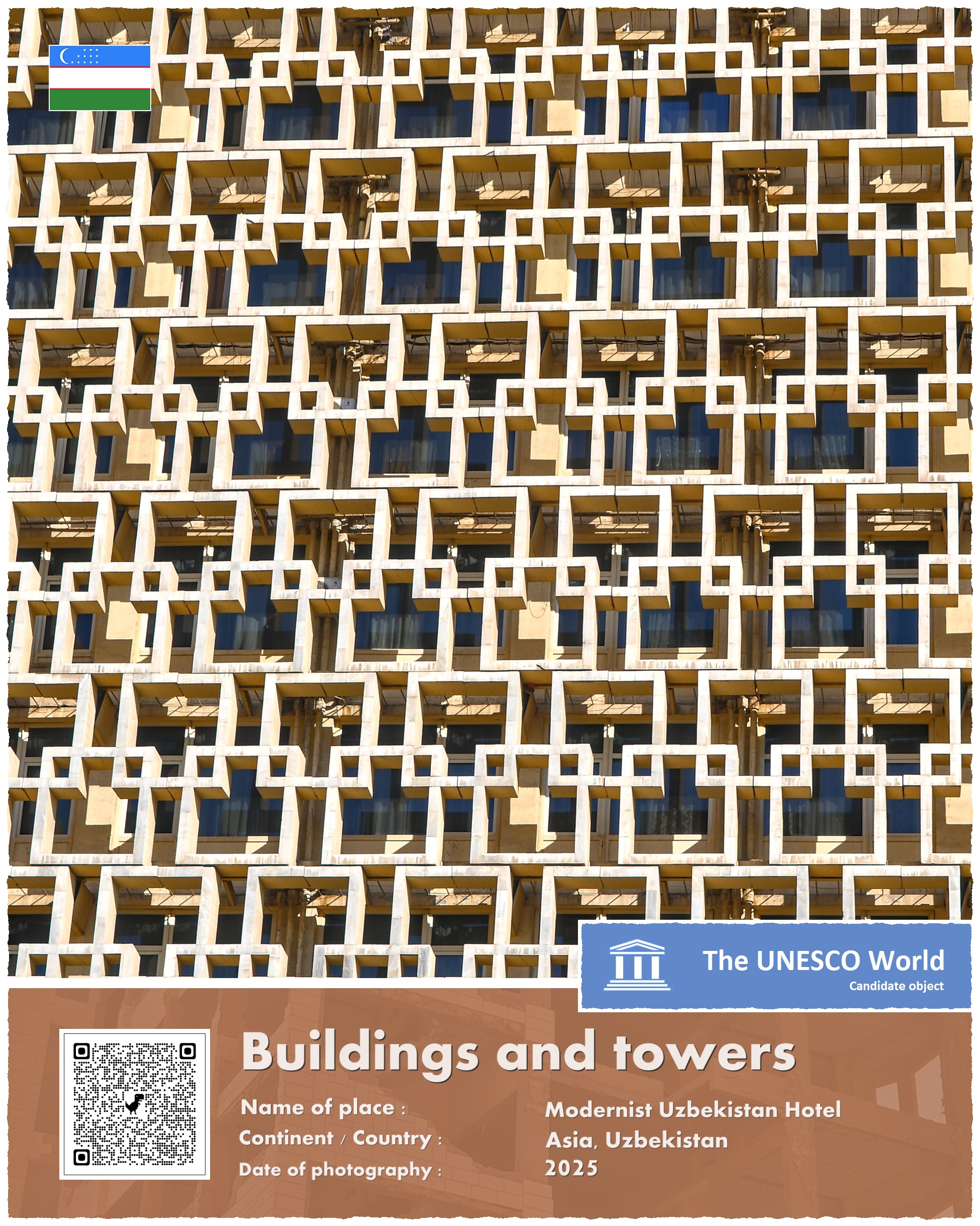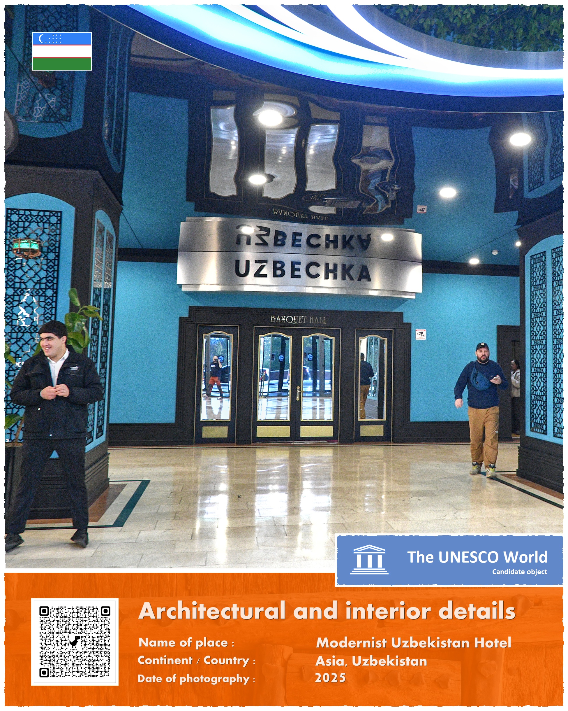 Trudno mi z entuzjazmem podejść do opisania owych miejsc: są one bardzo nierówne pod względem wartości, oraz dość zróżnicowane tematycznie. Taki na przykład Budynek mieszkalny Zhemchug jest zwykłym 15-piętrowym blokiem, i mógłby stać sobie niezauważony na jakimś większym blokowisku. Z kolei Uzbekistan Hotel jest fajny i chętnie byśmy w nim zamieszkali – ale niestety w terminie naszego pobytu wszystkie pokoje były wynajęte (ponad 200), więc mogliśmy tylko wypić w nim kawę.