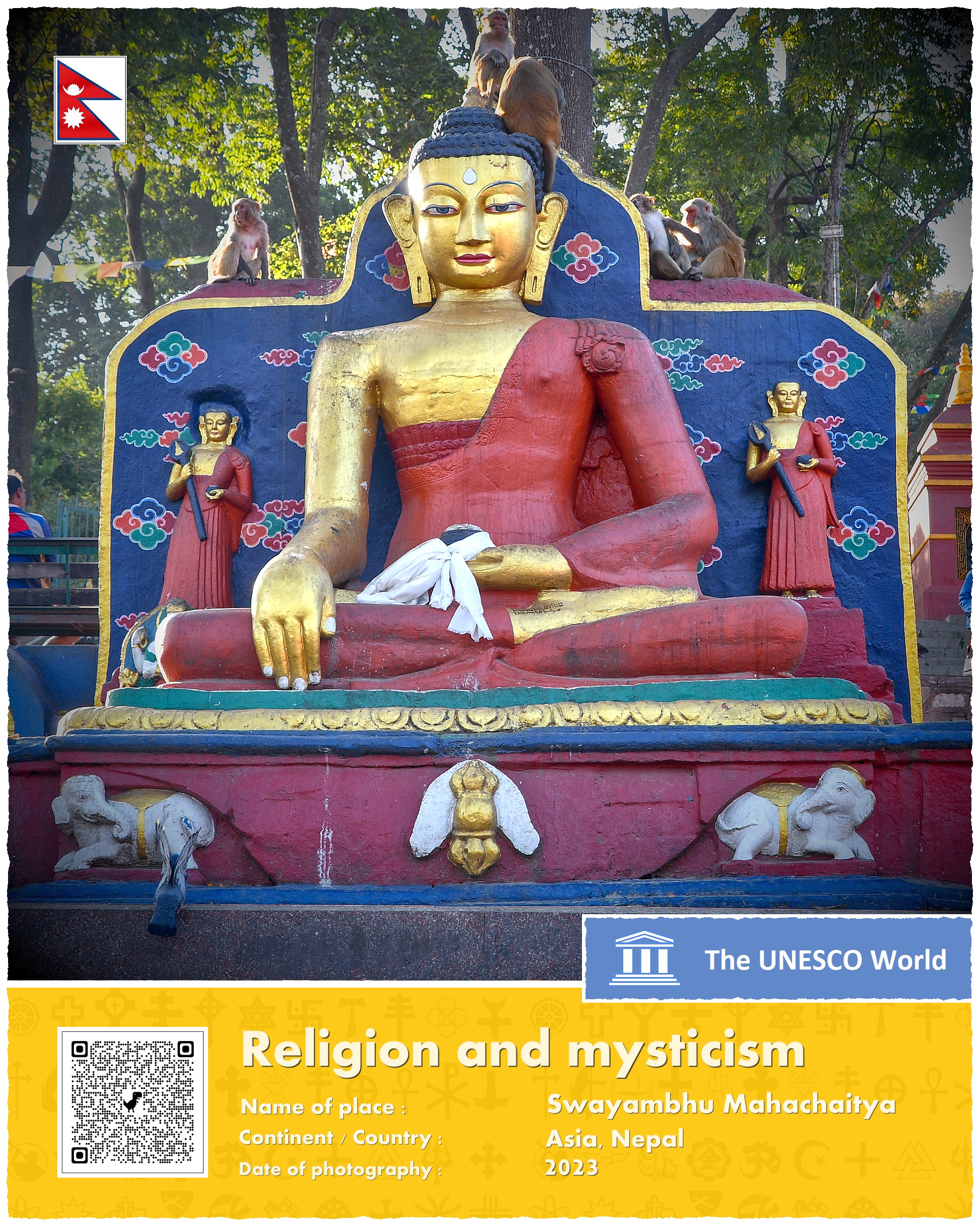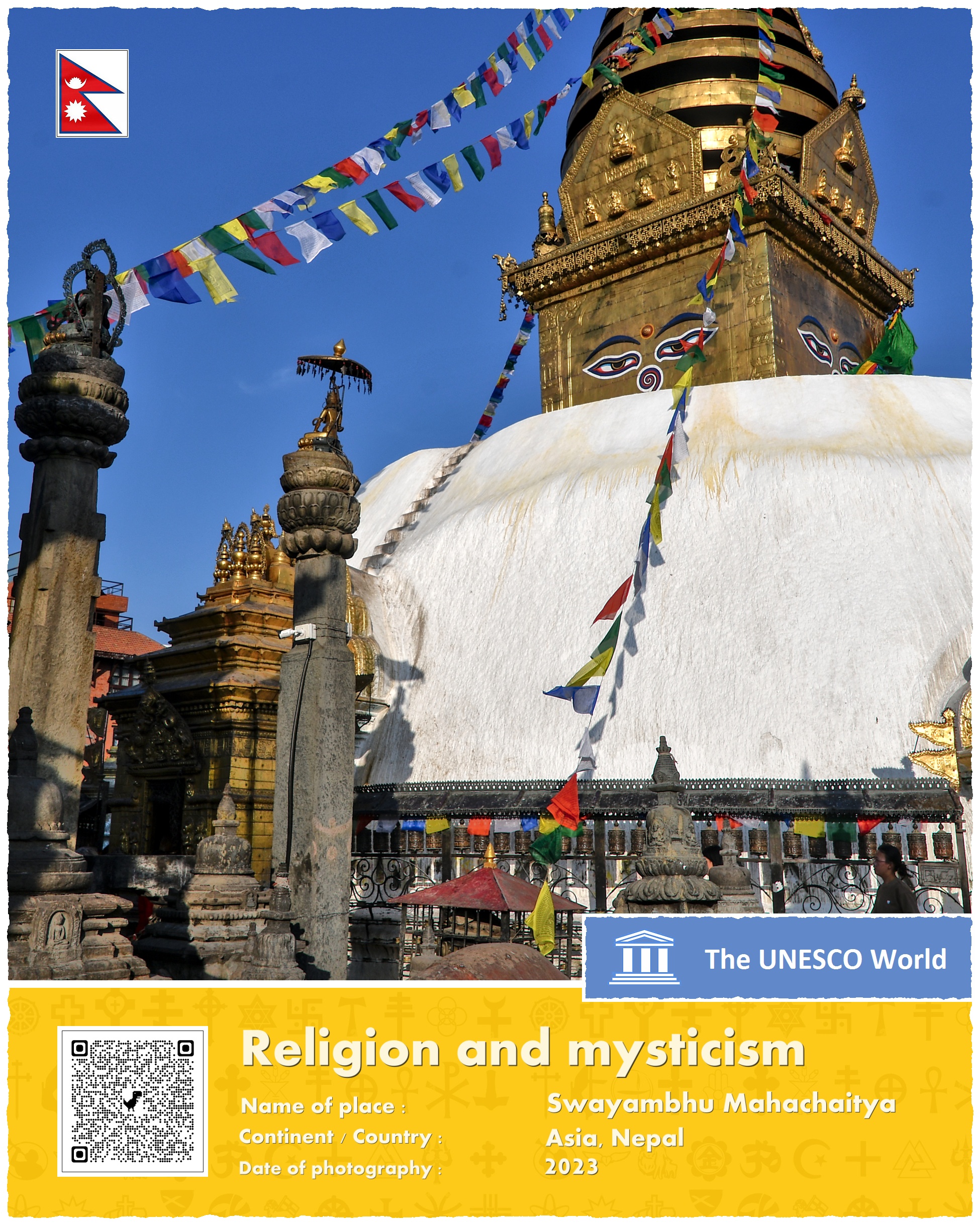 Wyspa z legendy istnieje do dziś, choć obecnie ma formę porośniętego lasem wzgórza wyrastającego niemal w samym centrum 4-milionowej metropolii jaką jest Katmandu. Stolica Nepalu zajmuje dolinę i oplata dno dawnego jeziora gęstą siecią ulic, dzielnic oraz sieci kanałów. Wstęp na wzgórze stał się płatny – obywatele krajów SAARC (czyli między innymi Nepalu, Indii, Pakistanu, Bangladeszu, Sri Lanki) płacą za wejście równowartość półtora złotego, a turyści z dalekiego świata (Europy, Ameryki itd.) około 5 złotych. Taka jest cena dostąpienia zaszczytu zbliżenia się do jednego z najświętszych miejsc buddyzmu.