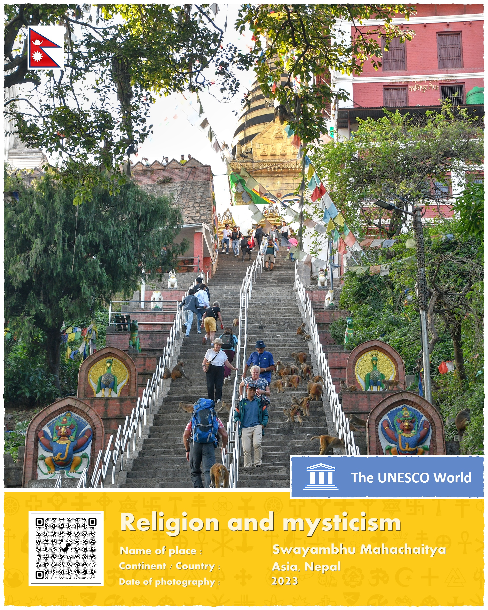 Tradycja podróży do Doliny Katmandu utrzymuje się już od ponad dwóch tysięcy lat. Docierali tu nie tylko mistrzowie duchowi z Indii i Tybetu, ale także sam Cesarz Ashoka, który zatrzymał się tu w III wieku przed naszą erą. Lista królów, którzy rozmyślali nad wszechświatem medytując na wzgórzu także jest bardzo długa. Wielu z nich podejmowało się roli odnowicieli i rekonstruktorów budowli, a niektórzy z nich postanowili nawet osiedlić się u stóp wzgórza, i tu właśnie dokonali żywota.