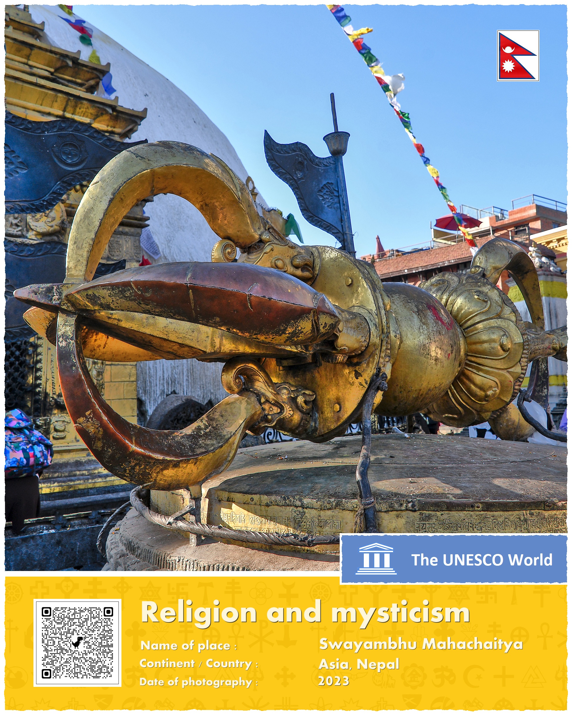 Pierwsze co zobaczymy po wejściu na szczyt to ogromnych rozmiarów Wadżra (Vajra), czyli berło zakończone dwoma skręconymi, kulistymi głowicami. Uzupełnione o tybetański dzwonek staje się ono bronią Indry – Króla Bogów, wedyjskiego władcy ziemi i niebios. Według wierzeń odpowiednio użyty mechanizm jest najpotężniejszą bronią w całym wszechświecie.