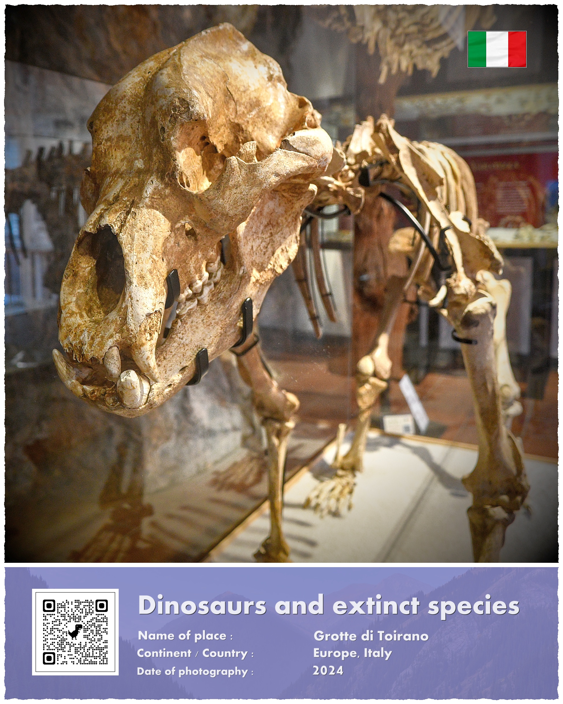 Szczątki co najmniej kilkuset niedźwiedzi jaskiniowych znaleziono między innymi właśnie we wnętrzu Grotte di Toirano. Zachowały się one w wielkich ilościach w części jaskini zwanej Cmentarzem Niedźwiedzi. Lokalne ulewy powodowały, że znajdujące się u wlotu jaskiń szczątki zwierząt były spychane przez wodę do głębszych części tuneli; tam w nisko położonych grotach grzęzły tworząc sterty kości. Taki wtórny sposób gromadzenia w jednym miejscu szczątków zwierząt i artefaktów archeolodzy nazywają depozytami.