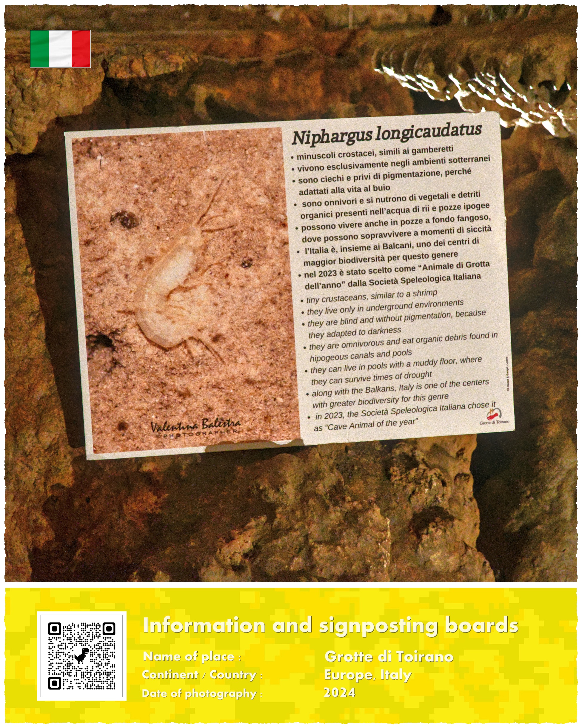 Kolejną niespodziankę funduje zwiedzającym tzw. Sala Stawu. W odciętym od światła słonecznego wodnym ekosystemie żyją przypominające krewetki malutkie skorupiaki zwane Niphargus Longicaudus. Są one ślepe i niemal przeźroczyste; żerują na szczątkach biologicznych spłukiwanych do jaskiń przez deszcze. Trzeba mieć dużo szczęścia by zobaczyć choć jedną z nich – ukrywają się one w mulistym dnie jeziorka; musimy uwierzyć na słowo, że tam właśnie są. W 2023 roku stworzonka te zostały nawet wybrane przez Włoskie Towarzystwo Speleologiczne… zwierzęciem jaskiniowym roku. Brawo Wy!