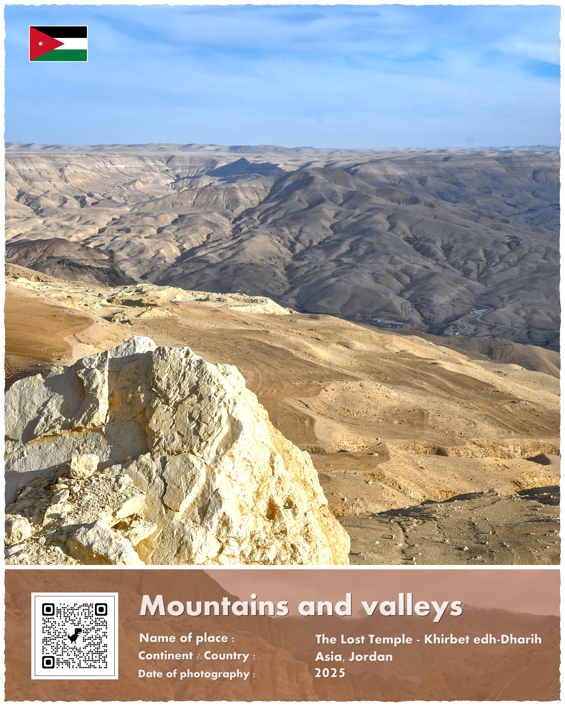 Pełna współczesna nazwa stanowiska archeologicznego brzmi: Khirbet edh-Dharih. Wyraz khirbet oznacza ruinę, co w tym przypadku sprawdza się idealnie. Ludzie do tej wąskiej i żyznej doliny dotarli już około osiem tysięcy lat temu, w okresie późnego neolitu. Osiedlili się tu za sprawą trzech źródeł wody, które wybijają z podziemi w pobliżu skał. Jak w wielu innych miejscach, w których góry spotykają się z pustynią, tak i tutaj to właśnie woda była najcenniejszym surowcem umożliwiającym przetrwanie.
