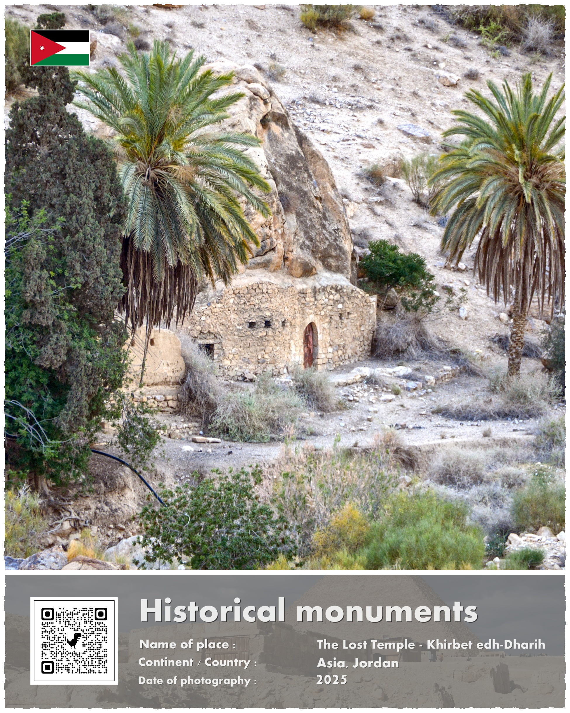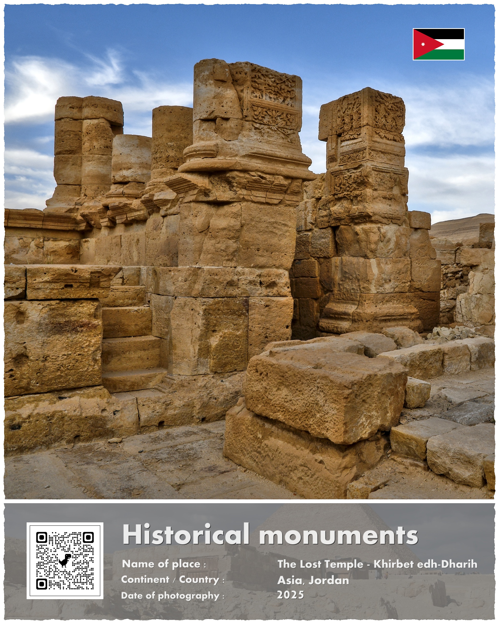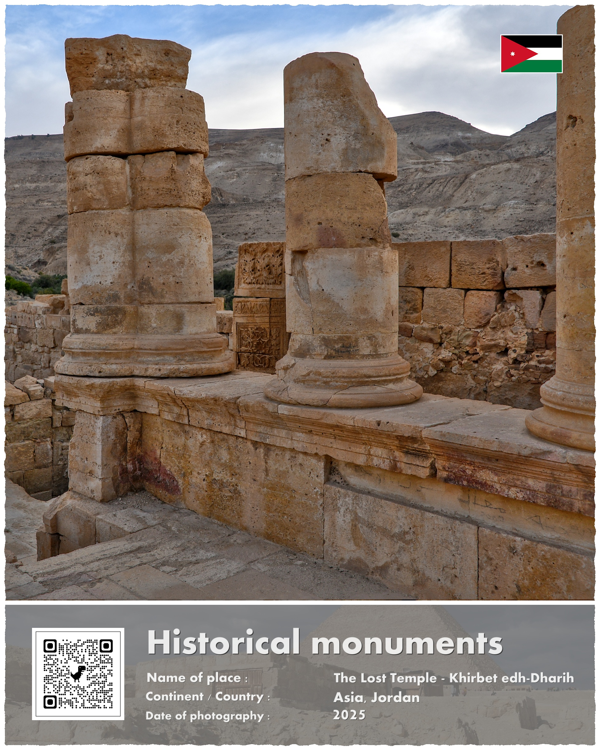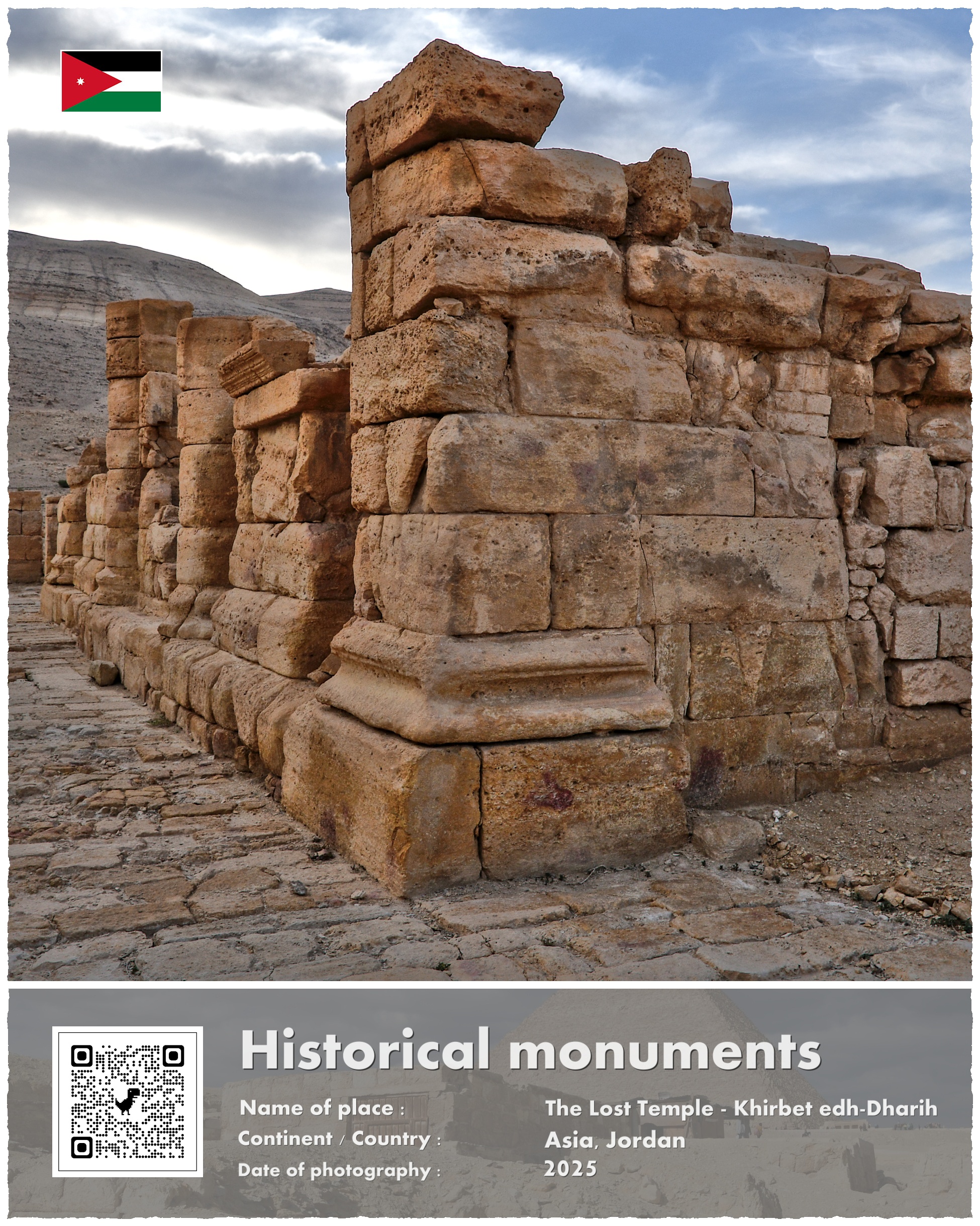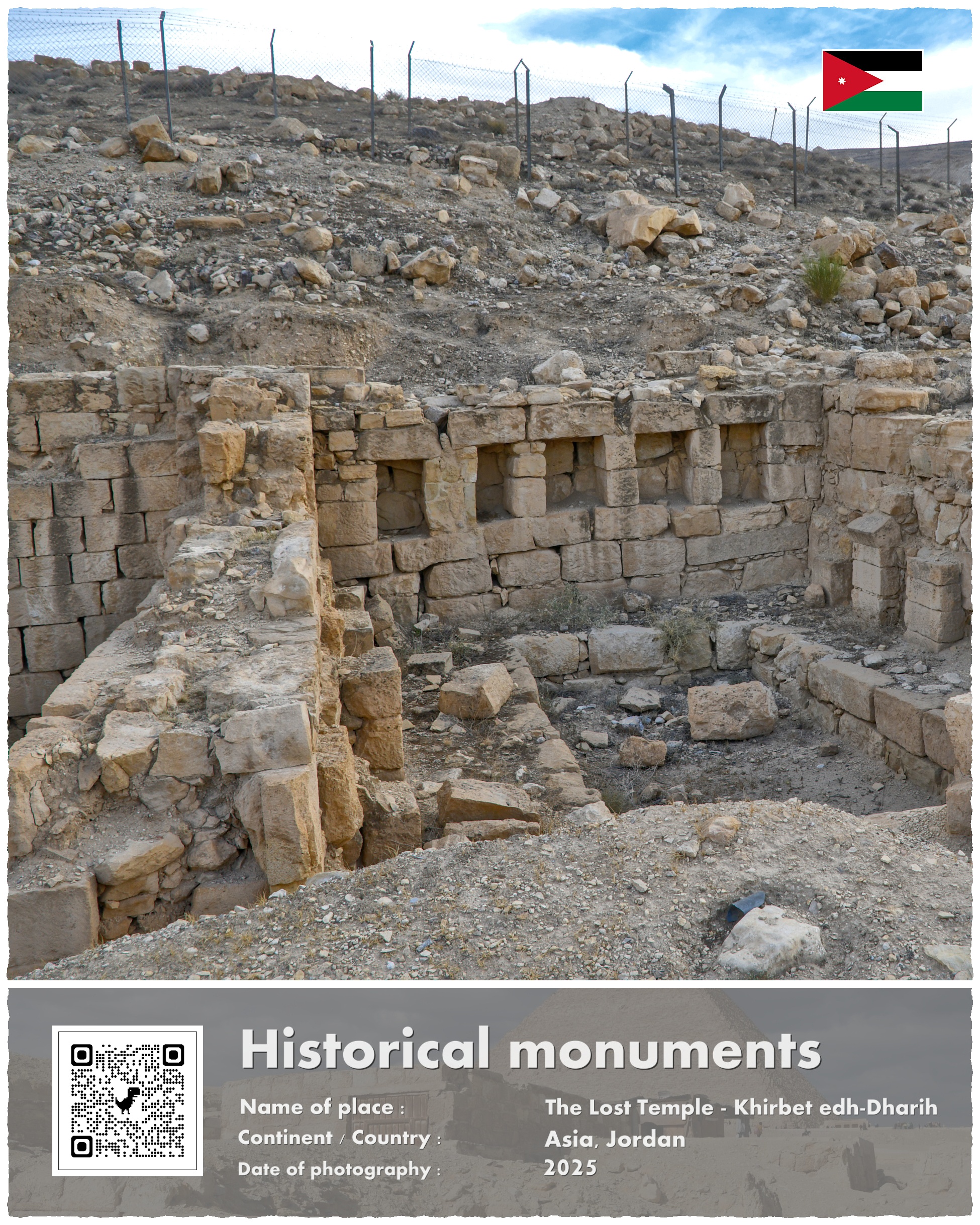 I to właśnie wtedy, za czasów słynnych Nabatejczyków i ich legendarnego miasta Perta – edh-Dharih przeżywało rozkwit. Na w miarę równej i dość obszernej półce skalnej wzniesiono świątynię, której szczątki widzicie na fotografiach. Gdy Nabatejczycy odeszli w mrok historii, osada przetrwała – choć szybko wróciła na swoje miejsce w szeregu wielu sobie podobnych niewielkich wiosek. Przeżyła czasy helleńskie, rzymskie, bizantyjskie, a także wczesny islam. W końcu jednak wspomnienie o świątyni zatarło się i zaginęło; wieś opustoszała. Odkopano ją w 1818 roku, a badania archeologiczne przeprowadzono w latach 1984 – 2007.
