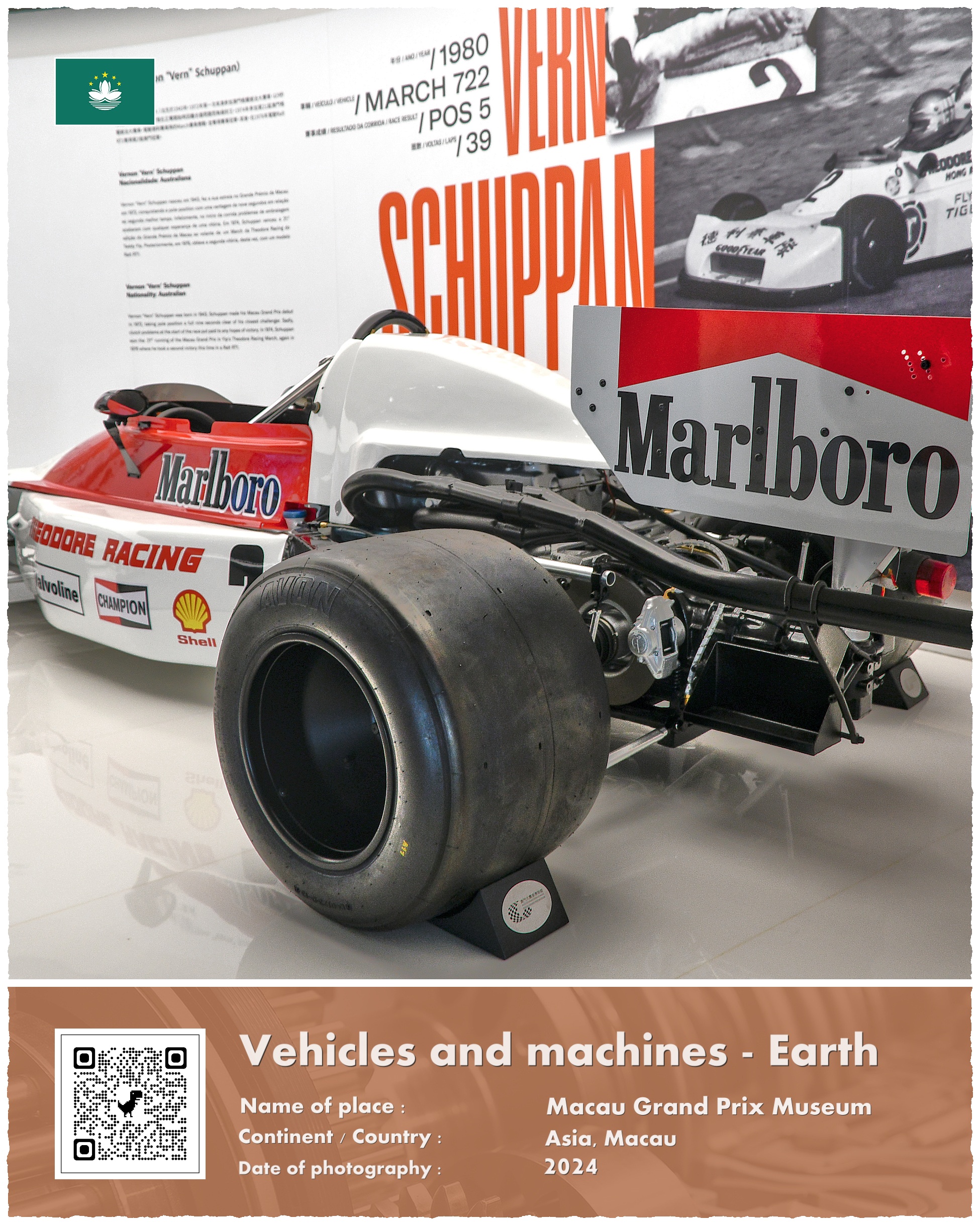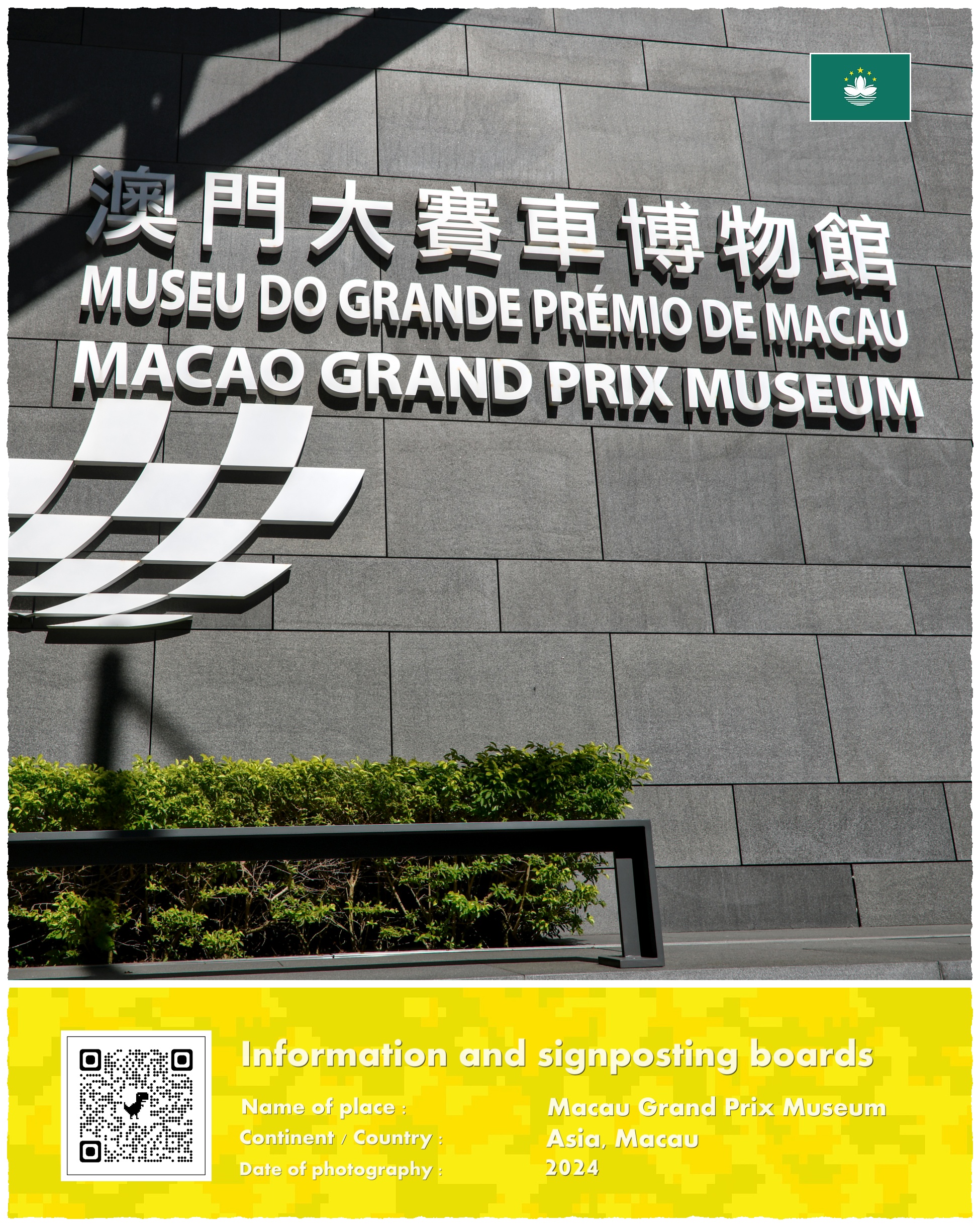 Dla tych, którzy nie mieli szczęścia (lub budżetu…) przyjechać do Macao w czasie trwania Grand Prix Macao w centrum miasta otwarto Muzeum Grand Prix Makau. Placówka zaczęła swoją działalność stosunkowo niedawno – 1 czerwca 2021 roku. Muzeum znajduje się w nowoczesnym budynku specjalnie zaprojektowanym do celów wystawowych; ma cztery piętra oraz powierzchnię wynoszącą aż 16 tysięcy metrów kwadratowych. Czynne jest we wszystkie dni tygodnia (bez wtorków) w godzinach od 10:00 do 18:00 (ostatnie wejście 17:30). Koszt biletu to około 40 złotych od osoby.