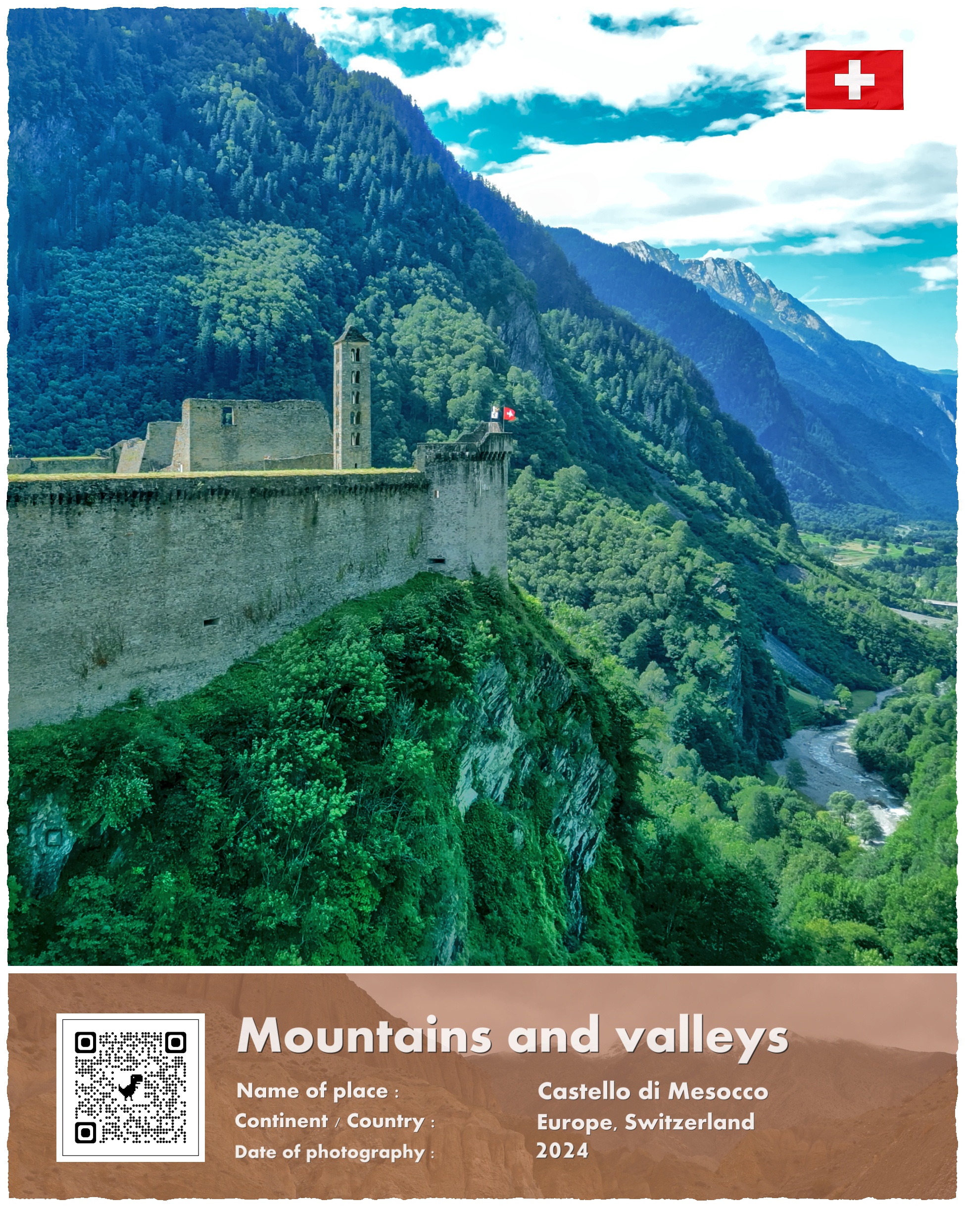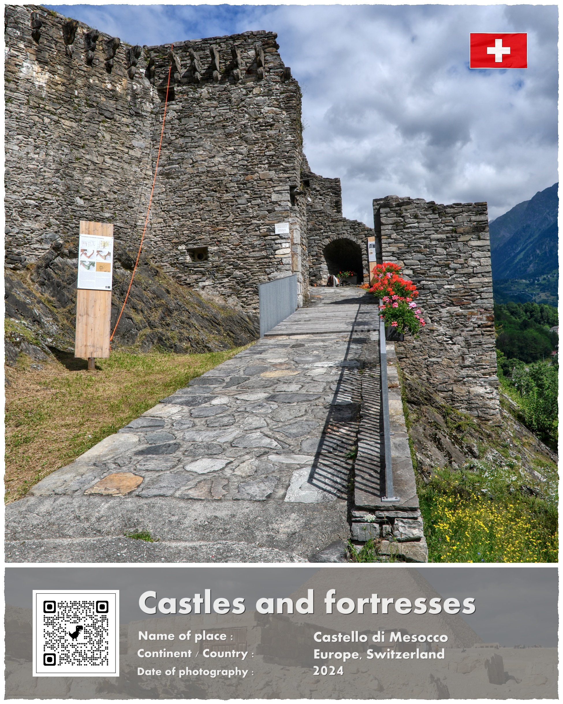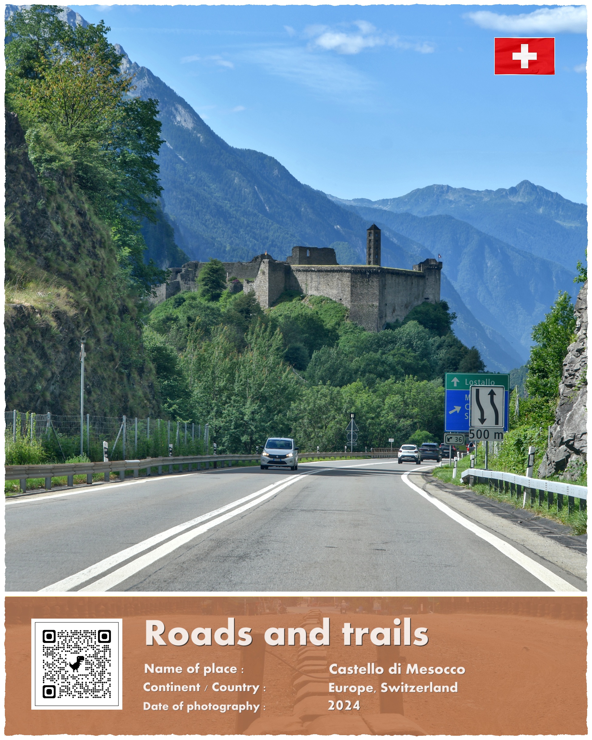 Jadąc ze środkowej Szwajcarii na południe, ku granicy Włoch, musimy przedrzeć się przez masyw Alp. Wiedzie tędy kilka dróg, a jedna z nich – oznaczona numerem 13 – prowadzi przez średniowieczną Bellinzonę. Niecałe trzydzieści kilometrów na północ od tego miasta napotkamy strzeliste wzgórze wznoszące się pośrodku wąskiej, rzecznej doliny, a na nim imponujący zamek – Castello di Mesocco.