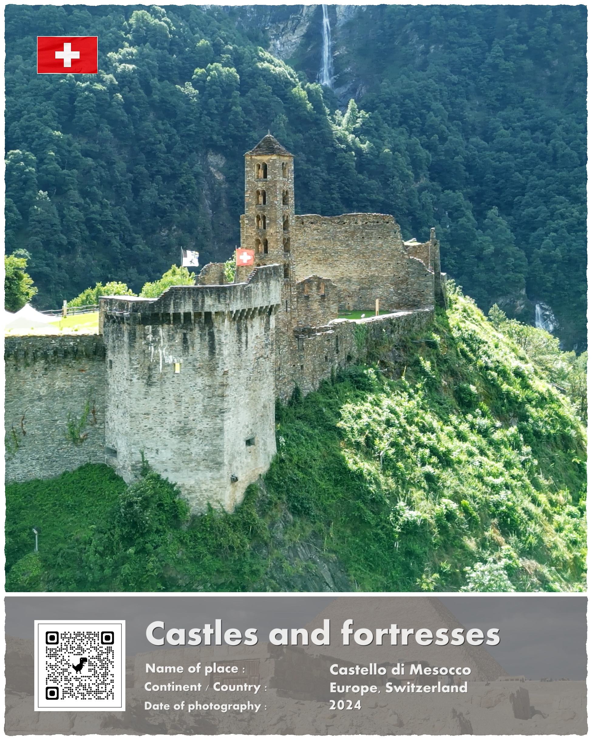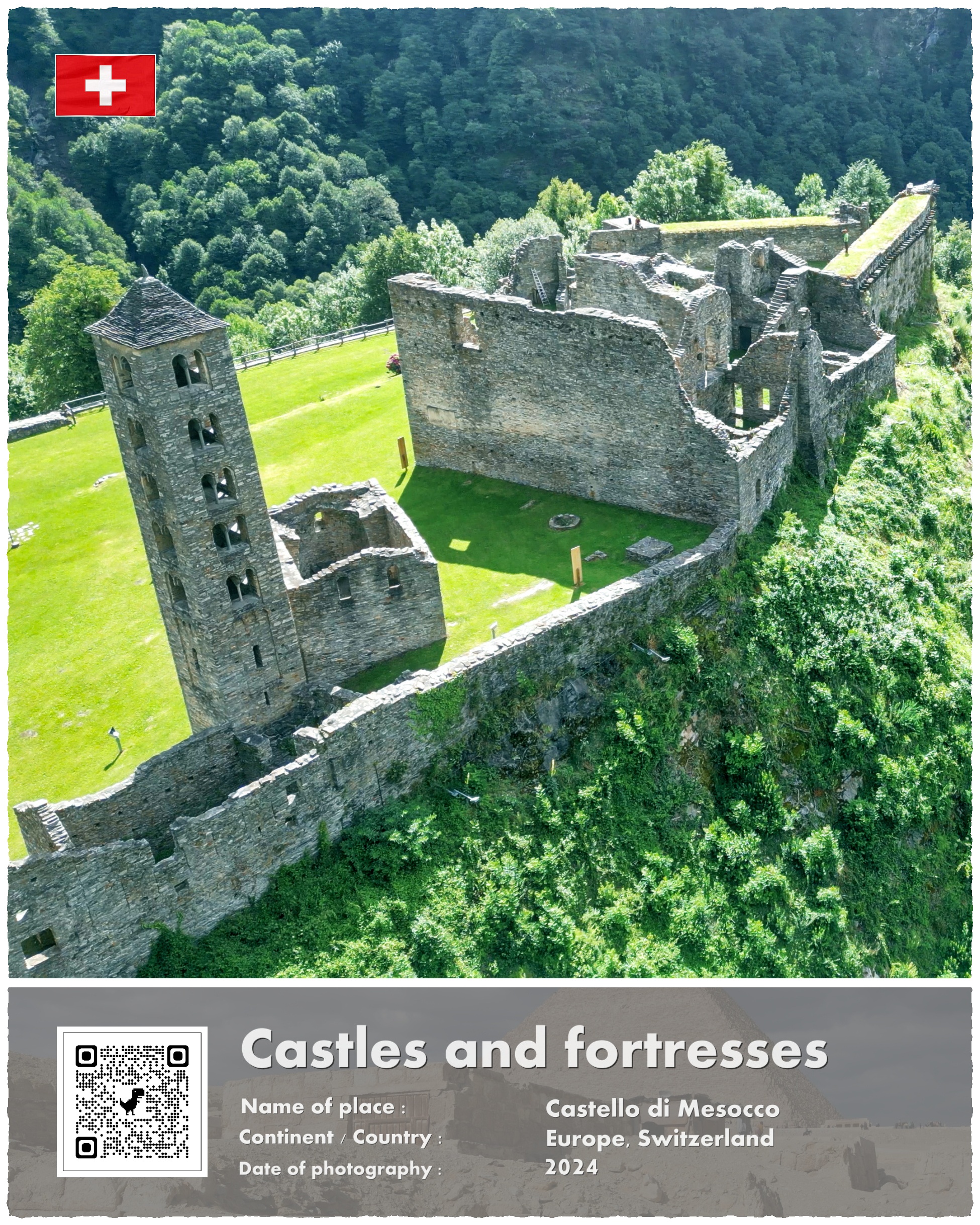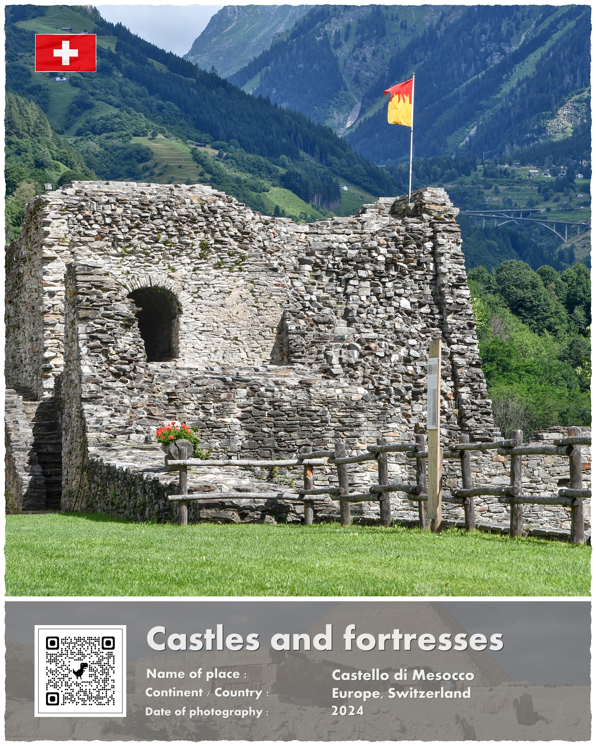 Jadąc ze środkowej Szwajcarii na południe, ku granicy Włoch, musimy przedrzeć się przez masyw Alp. Wiedzie tędy kilka dróg, a jedna z nich – oznaczona numerem 13 – prowadzi przez średniowieczną Bellinzonę. Niecałe trzydzieści kilometrów na północ od tego miasta napotkamy strzeliste wzgórze wznoszące się pośrodku wąskiej, rzecznej doliny, a na nim imponujący zamek – Castello di Mesocco.