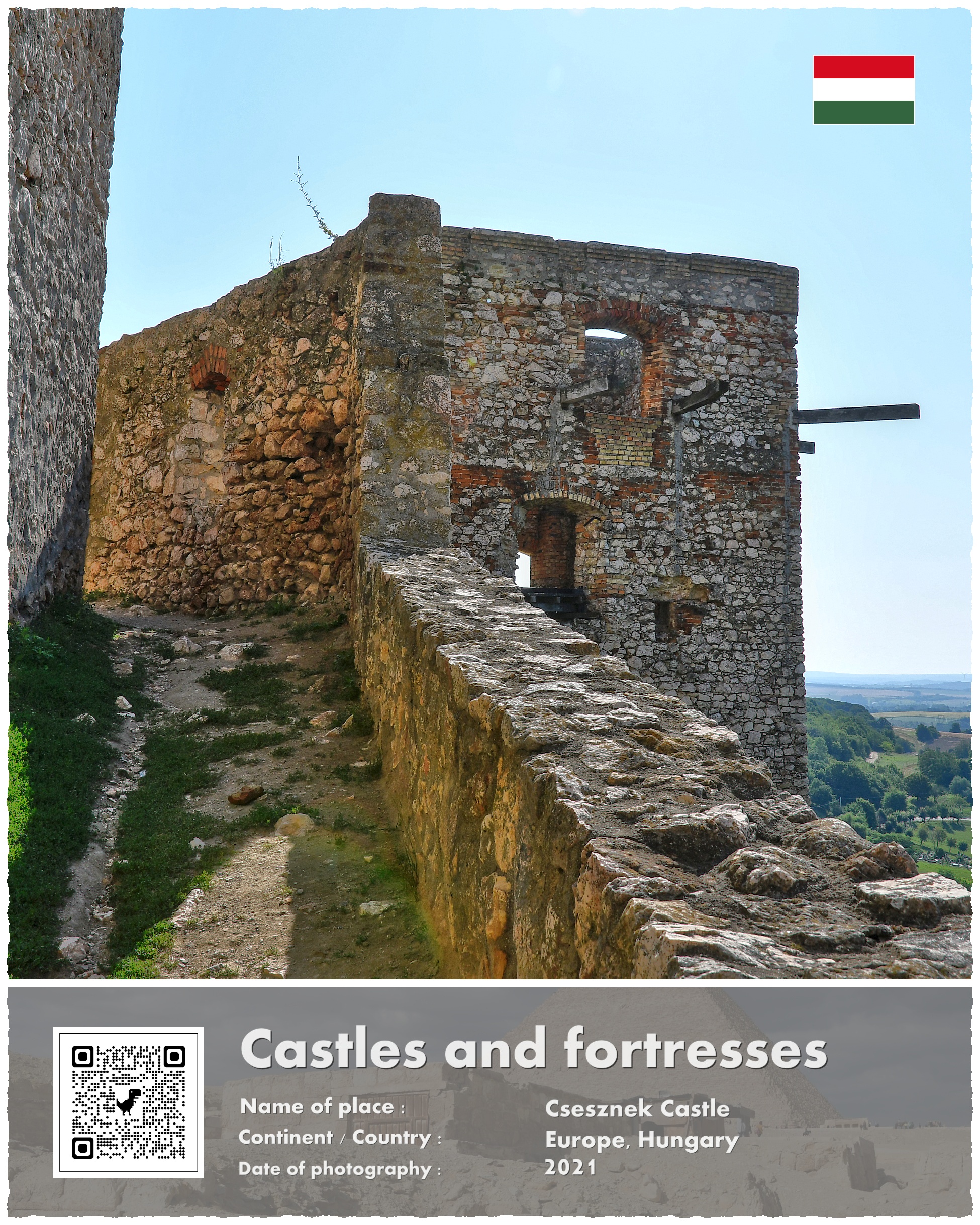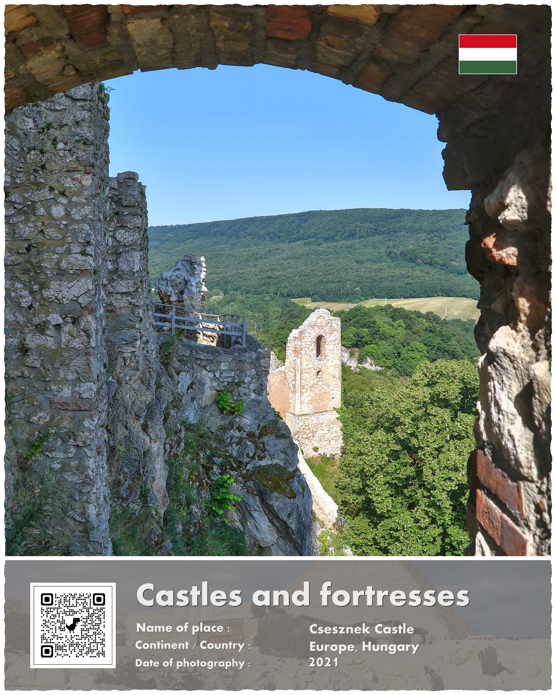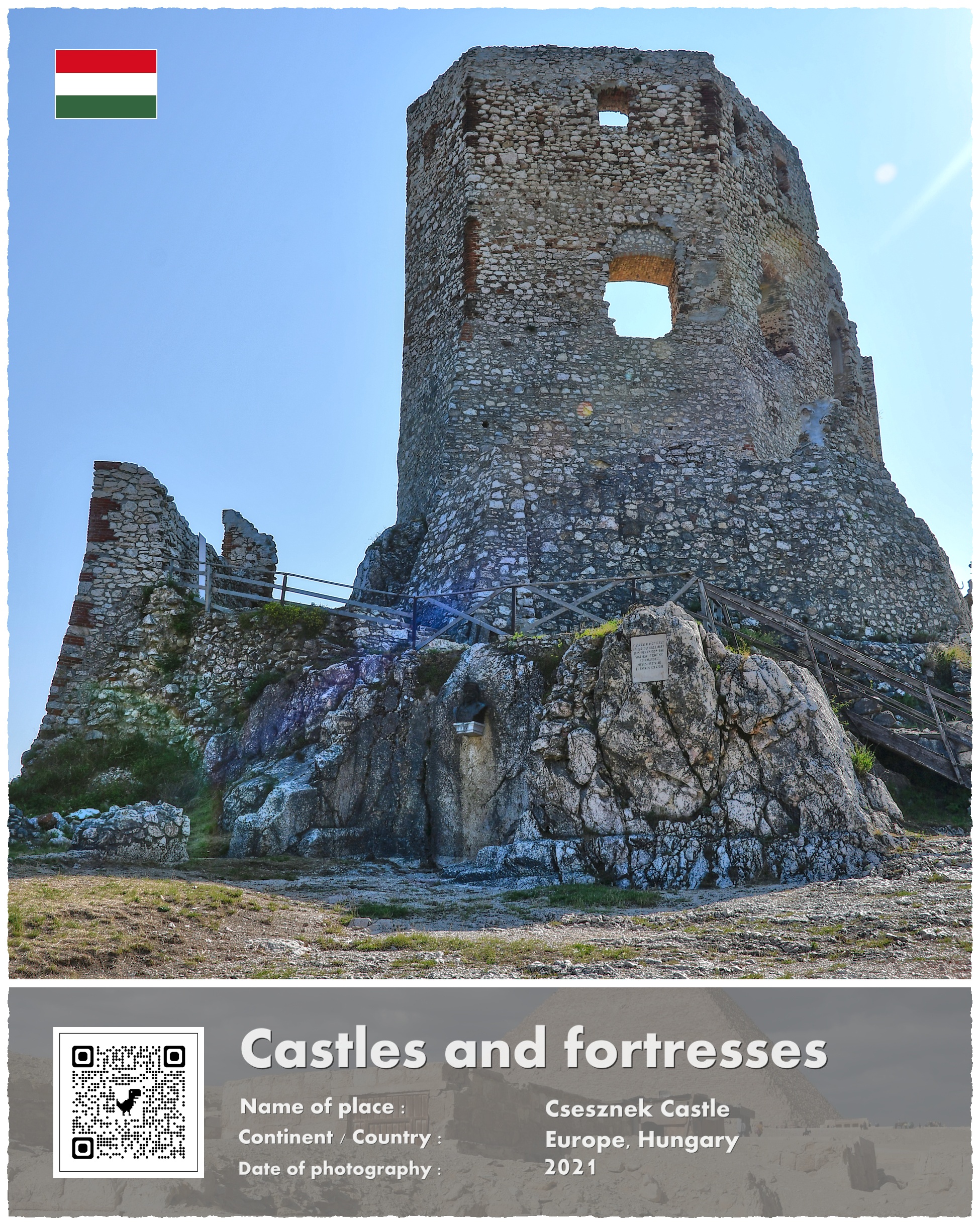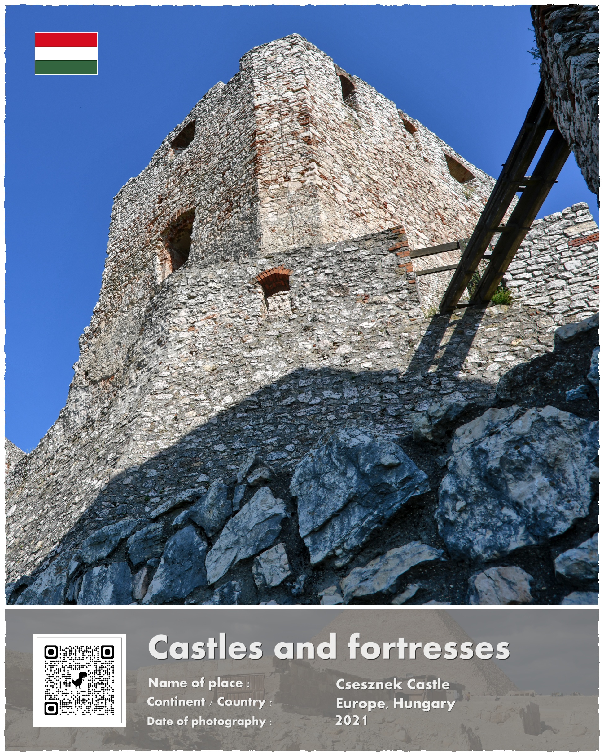 A co z Zamkiem Csesznek, który jest fotograficznym bohaterem mojej opowieści? Powstał on właśnie w ramach paneuropejskich przygotowań do odparcia drugiej mongolskiej inwazji. Wzniesiono go na potężnej skale, i przeznaczono do wielomiesięcznej obrony. Wzniesiony w 1263 roku stanowił jeden z licznych kłów, o które rozbić się miały mongolskie tumeny. Te jednak nigdy już nie nadeszły w sile, która zagroziłaby istnieniu Europy.