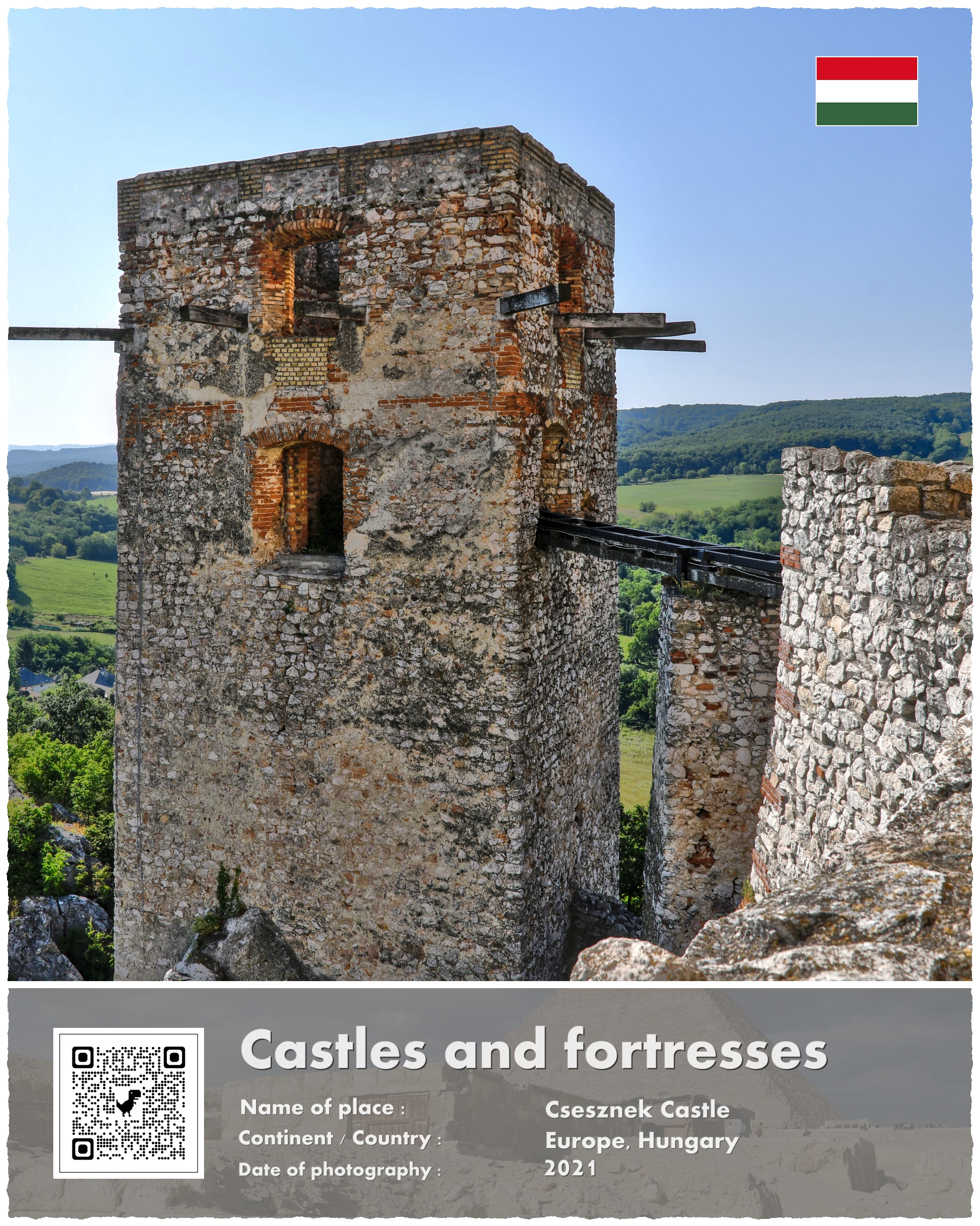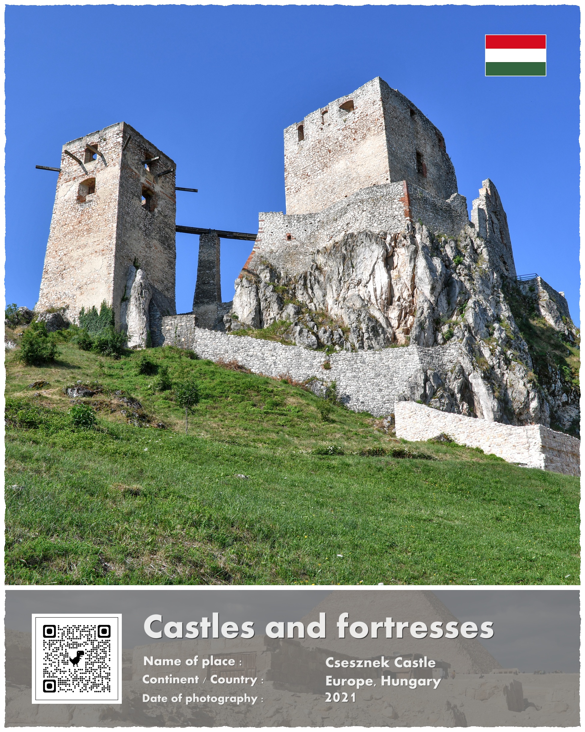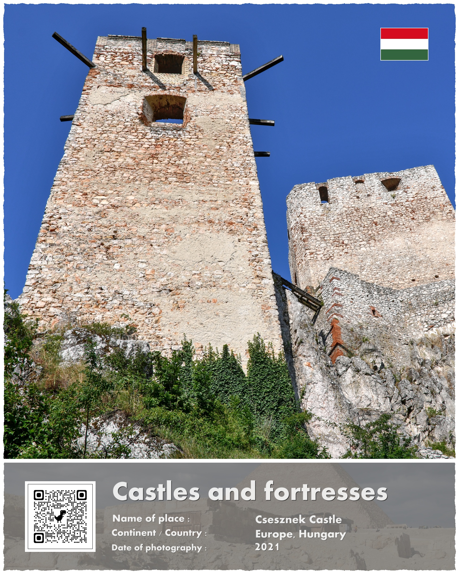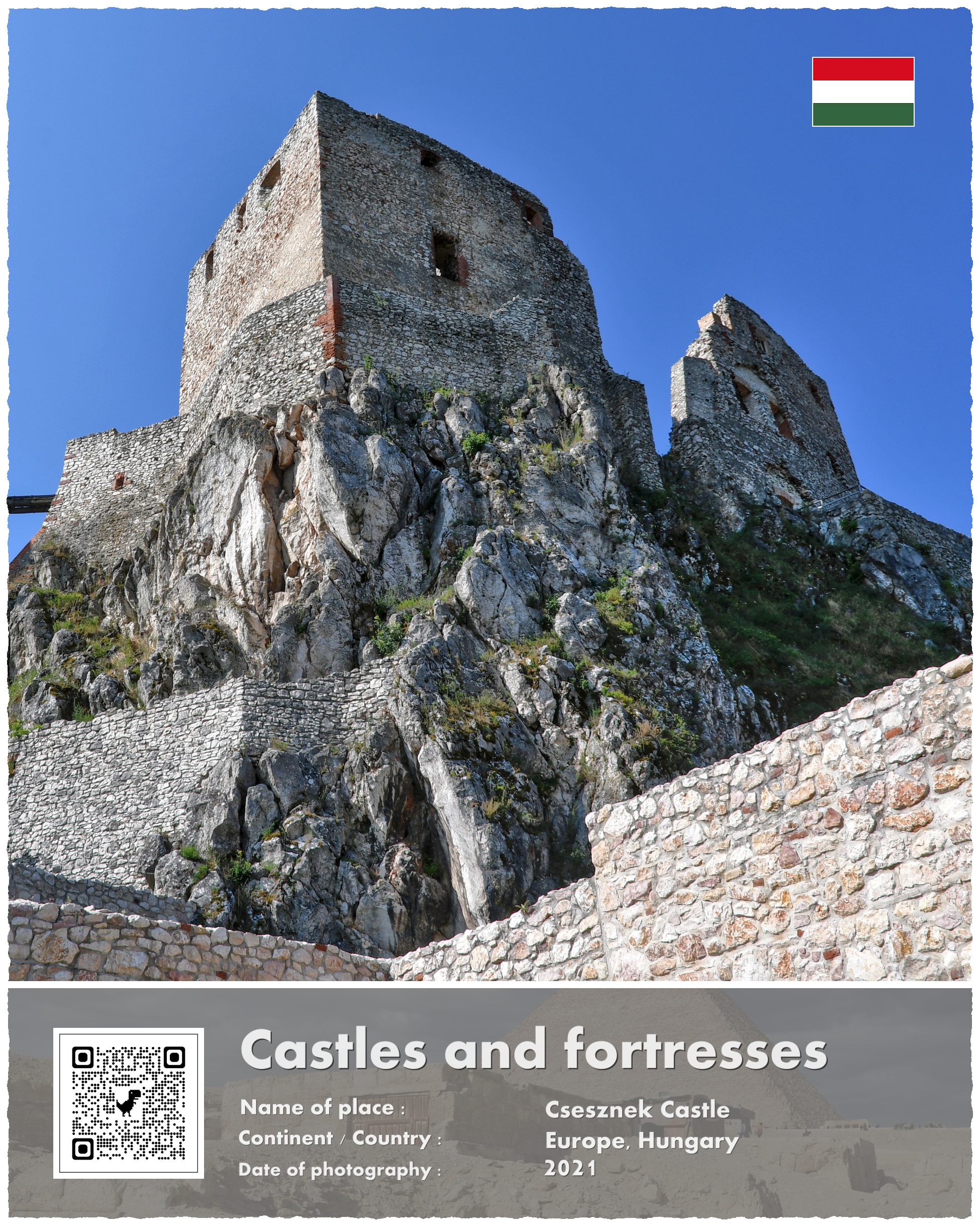 A co z Zamkiem Csesznek, który jest fotograficznym bohaterem mojej opowieści? Powstał on właśnie w ramach paneuropejskich przygotowań do odparcia drugiej mongolskiej inwazji. Wzniesiono go na potężnej skale, i przeznaczono do wielomiesięcznej obrony. Wzniesiony w 1263 roku stanowił jeden z licznych kłów, o które rozbić się miały mongolskie tumeny. Te jednak nigdy już nie nadeszły w sile, która zagroziłaby istnieniu Europy.
