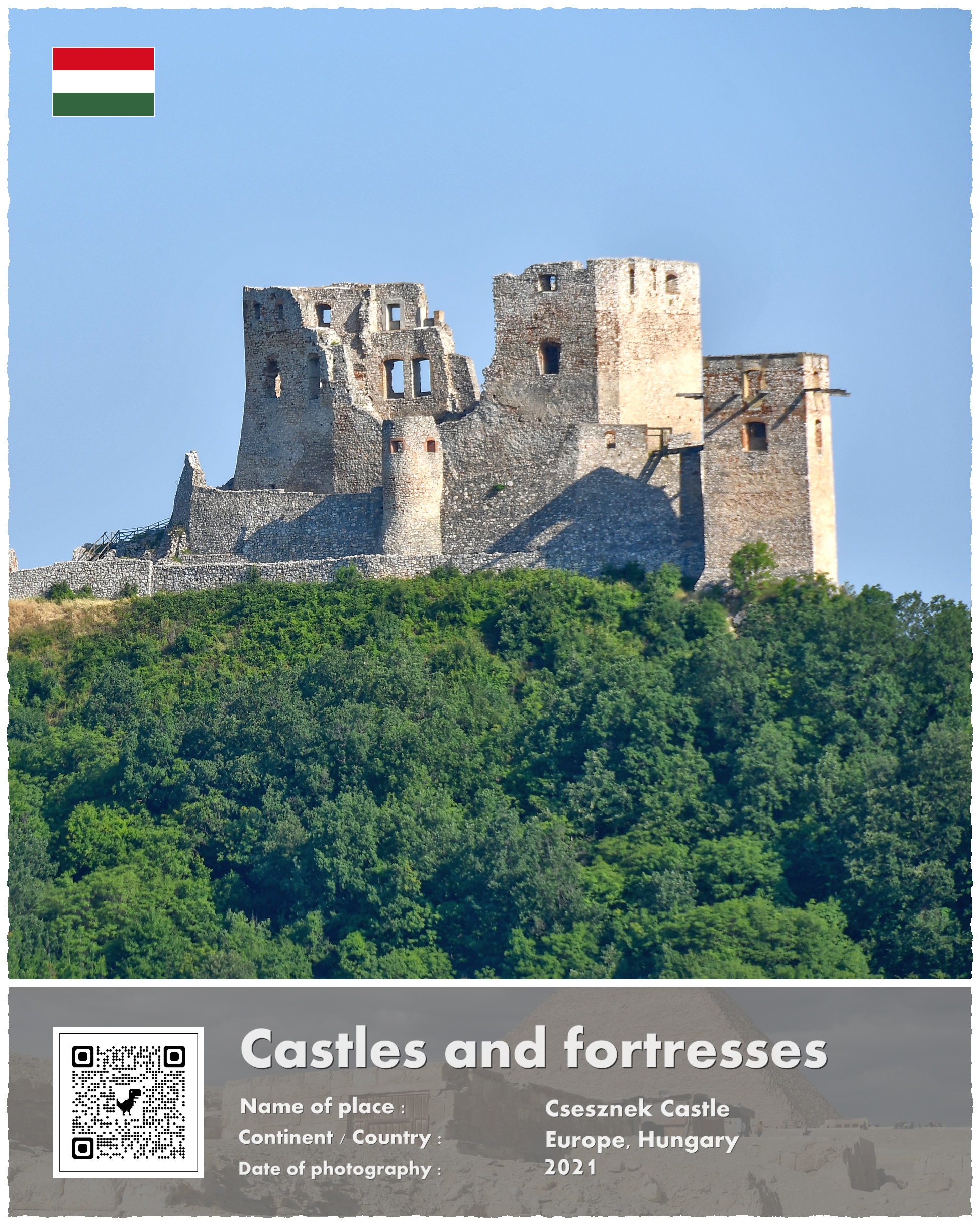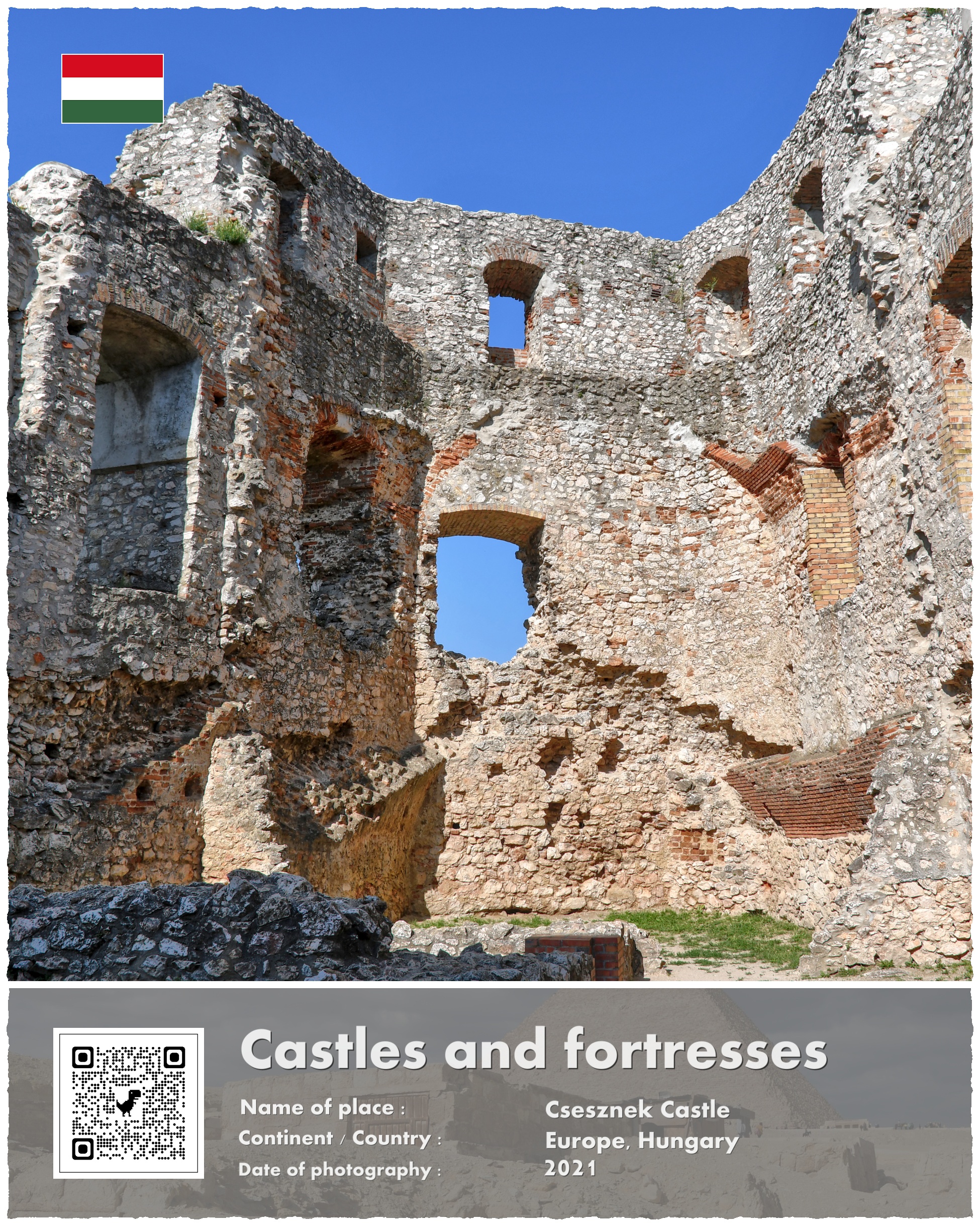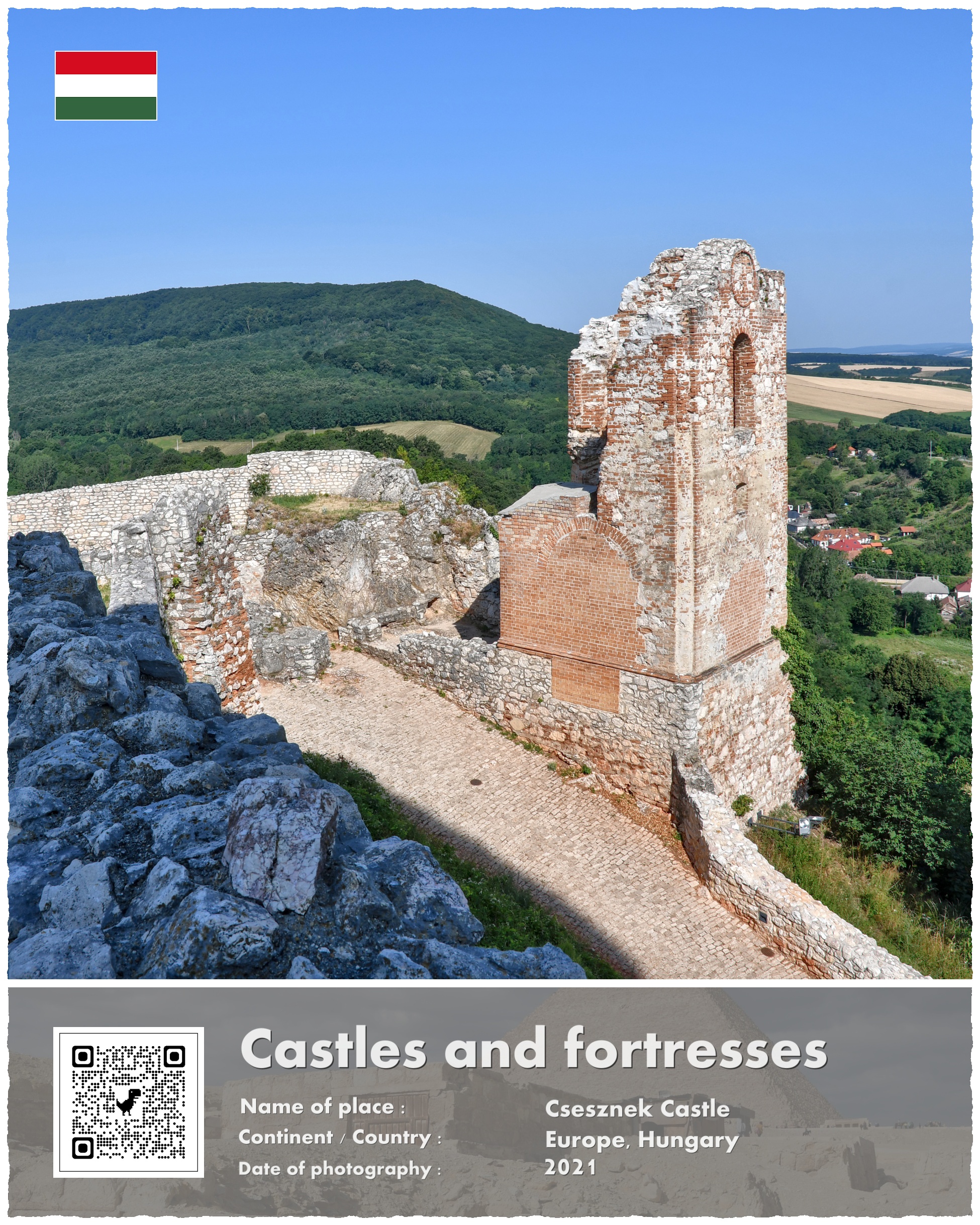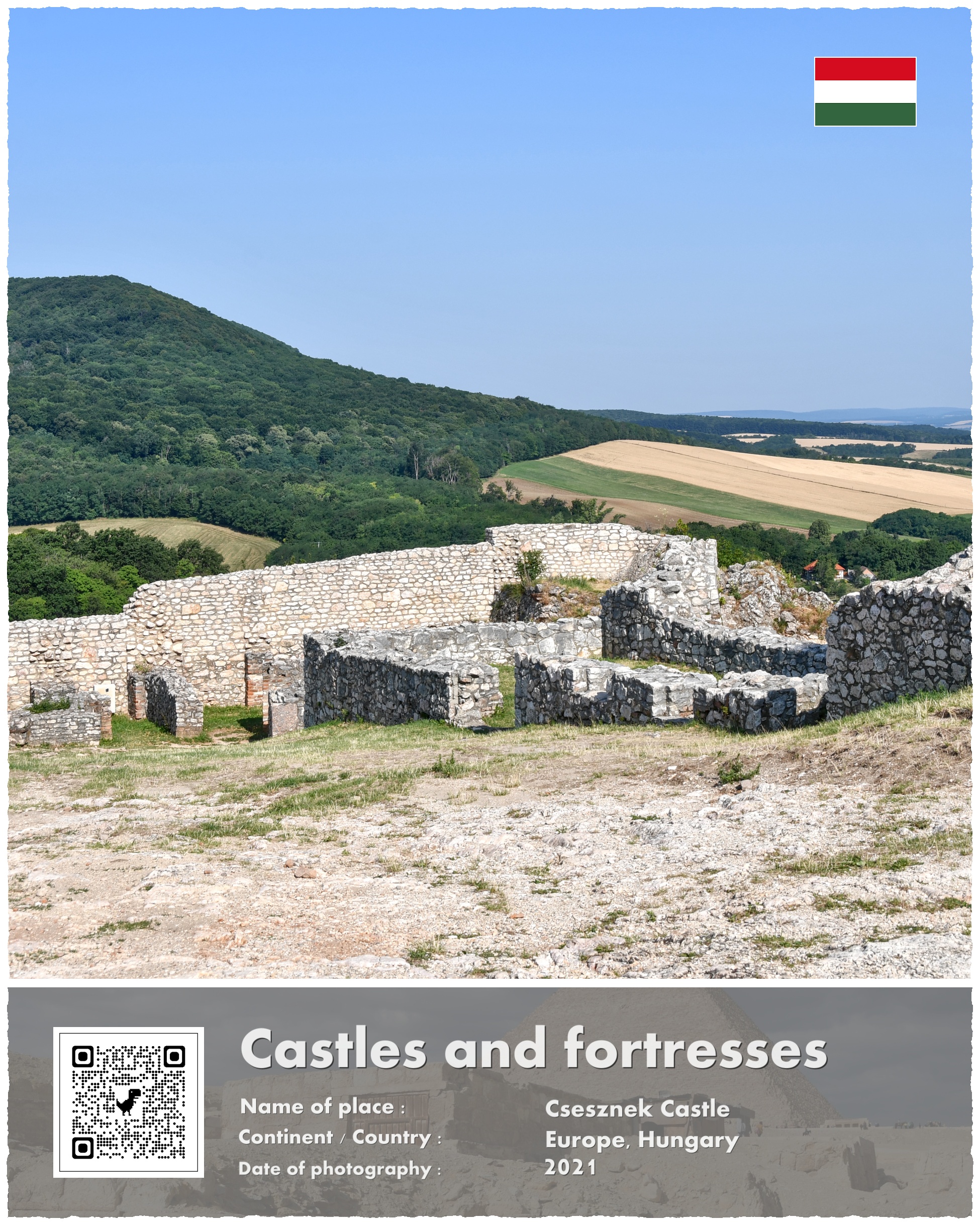 A co z Zamkiem Csesznek, który jest fotograficznym bohaterem mojej opowieści? Powstał on właśnie w ramach paneuropejskich przygotowań do odparcia drugiej mongolskiej inwazji. Wzniesiono go na potężnej skale, i przeznaczono do wielomiesięcznej obrony. Wzniesiony w 1263 roku stanowił jeden z licznych kłów, o które rozbić się miały mongolskie tumeny. Te jednak nigdy już nie nadeszły w sile, która zagroziłaby istnieniu Europy.